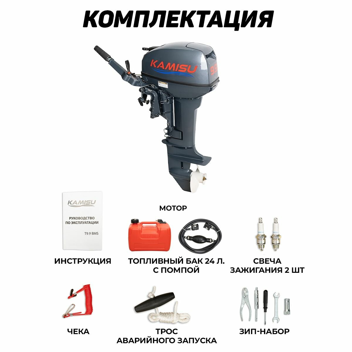 Бензиновый лодочный мотор KAMISU T 9.9 BMS 2-х тактный