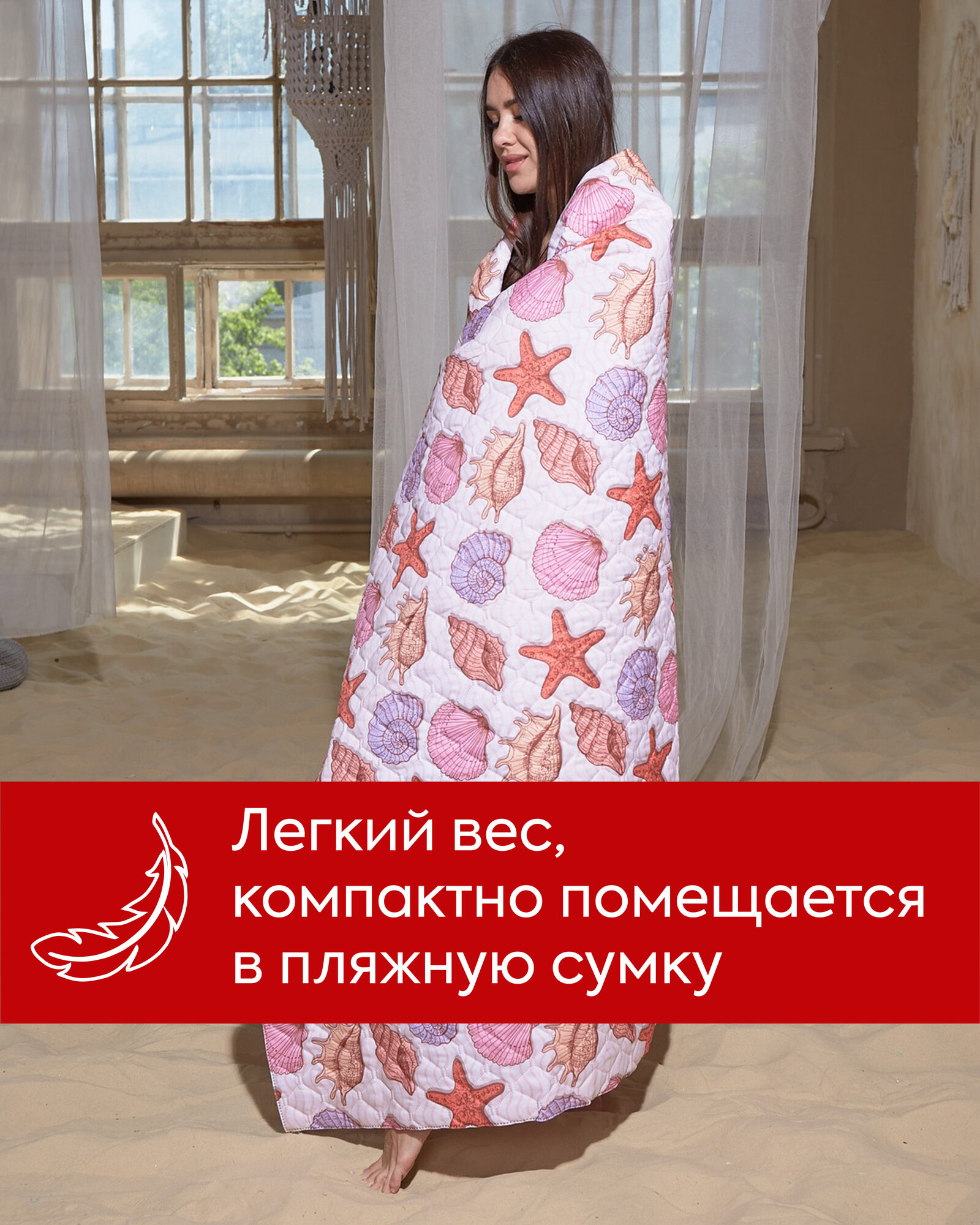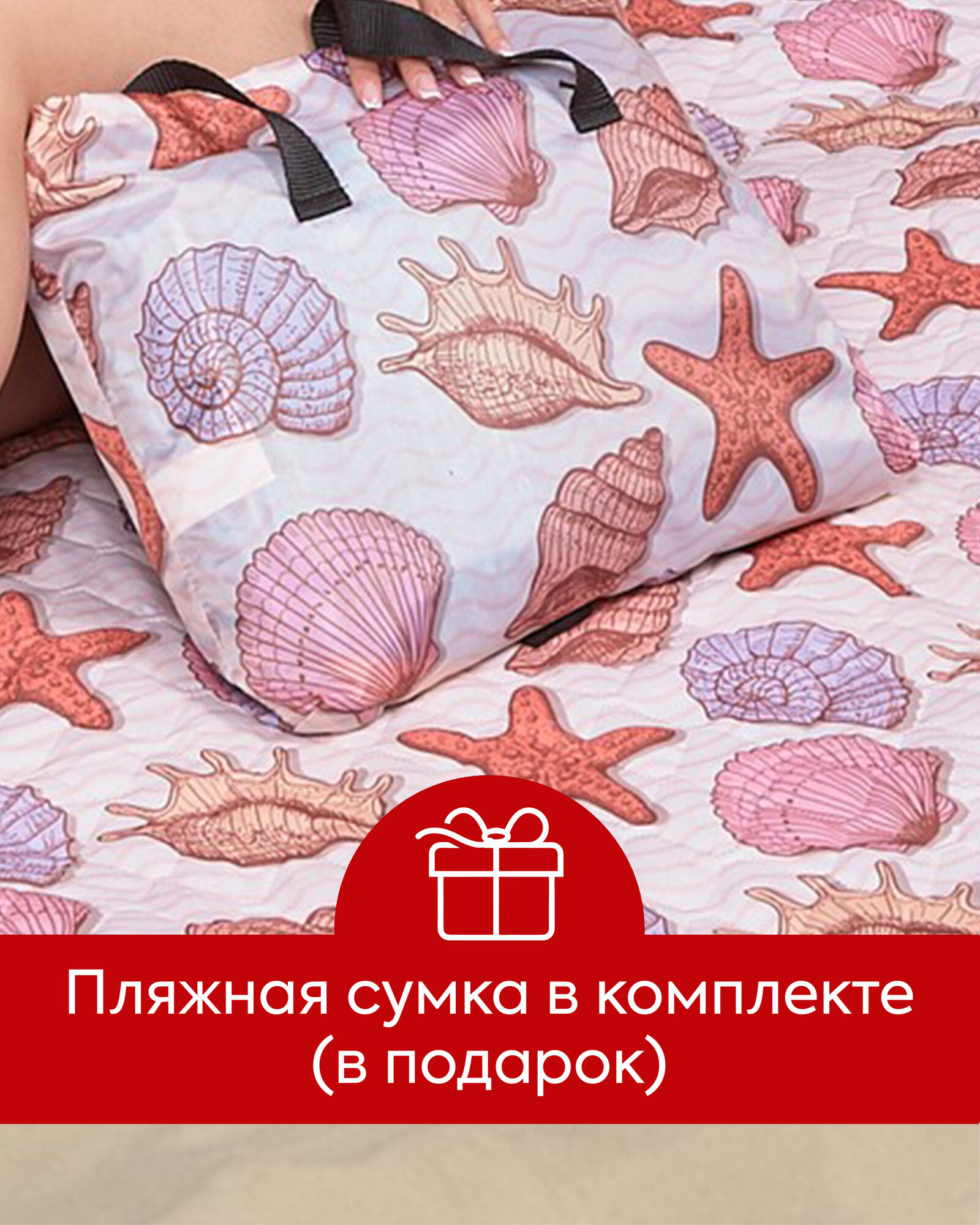 Пляжное покрывало, парео, коврик, полотенце /145х200/ пляжная сумка/ Ракушки интересное: