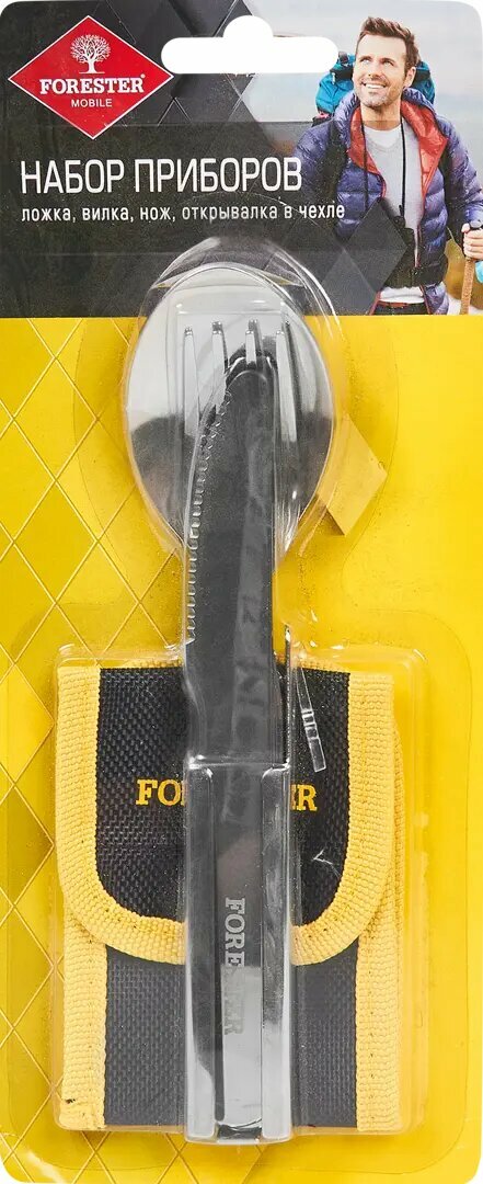 Купить Набор столовых приборов Forester "Mobile", ложка, вилка, нож, открывалка, 16-18 см, нержавеющая сталь, в чехле