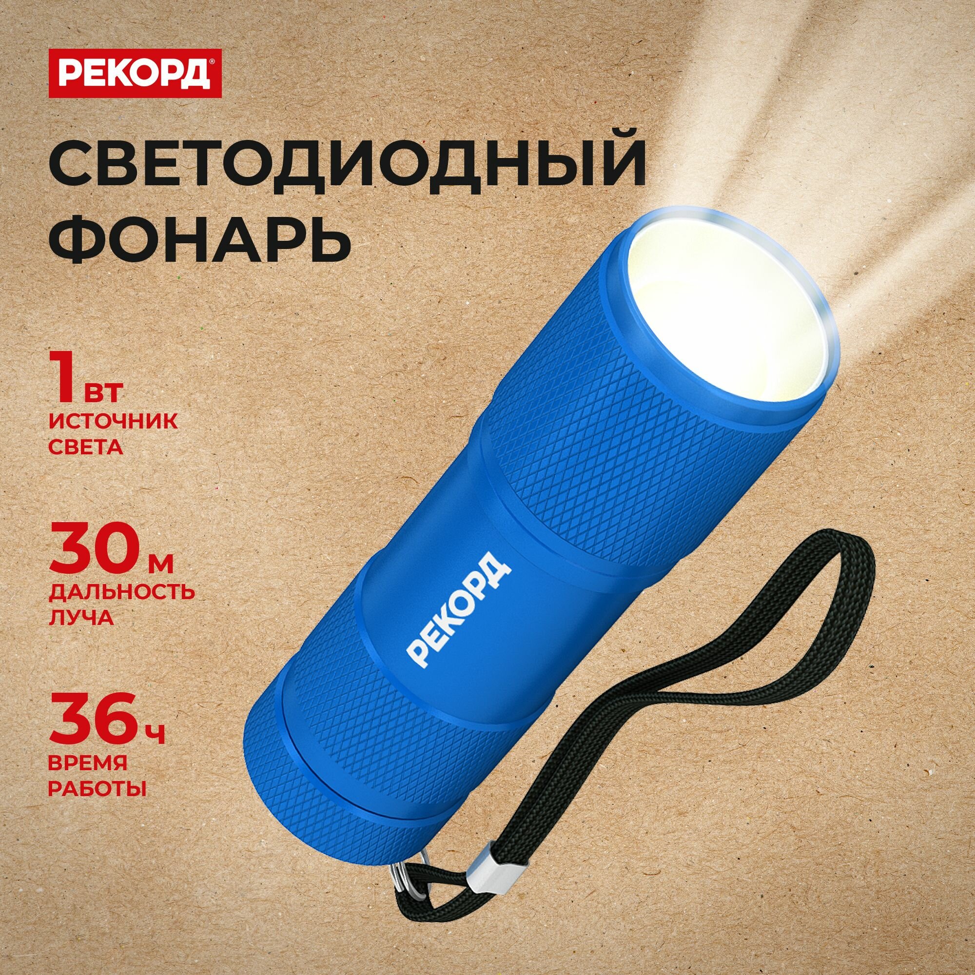 Фонарь ручной Рекорд MS-300 1Вт - Синий - Алюминий интересное: