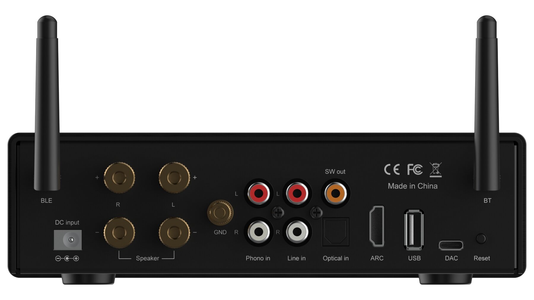 | Плюсы: | дешёвый, много входов (toslink/spdif и hdmi!), есть пульт и приложение. АС 4 — 8 Ом. Даже фонокорректор есть! |