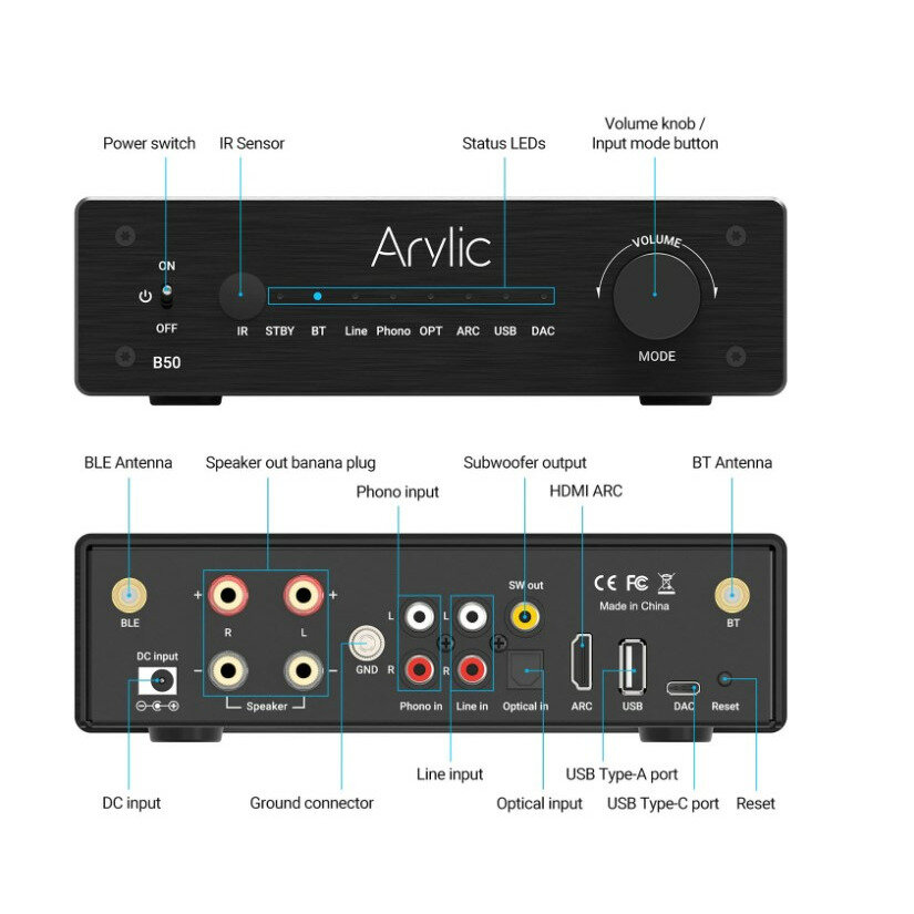 Arylic Стереоусилитель С Двусторонним Блютуз Arylic B50