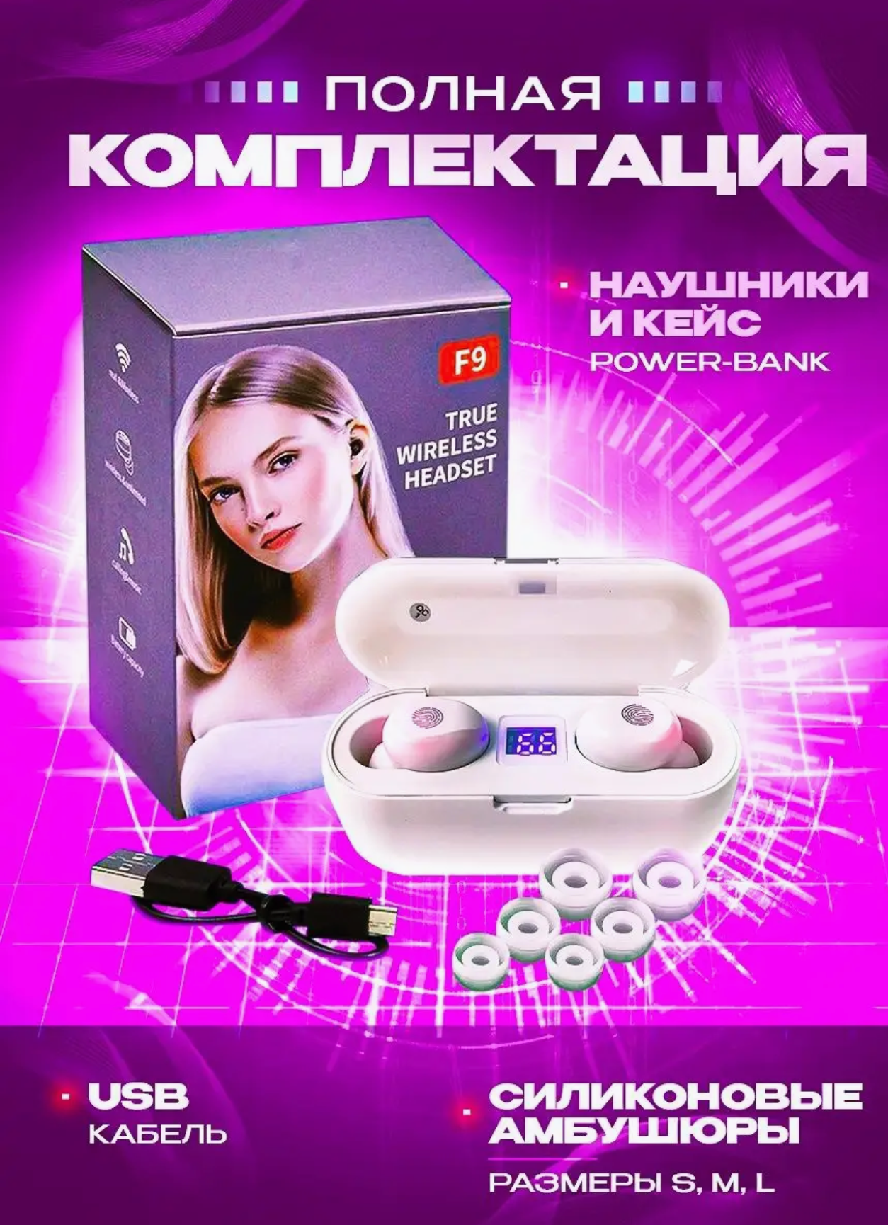 Ниже Вы можете прочитать отзывы на Наушники беспроводные / наушники сенсорные с powerbank / наушники F9 вакуумные/белые/прозрачная крышка, ознакомится с подробными характеристиками, посмотреть интересные обзоры и фотографии на Наушники беспроводные / наушники сенсорные с powerbank / наушники F9 вакуумные/белые/прозрачная крышка.