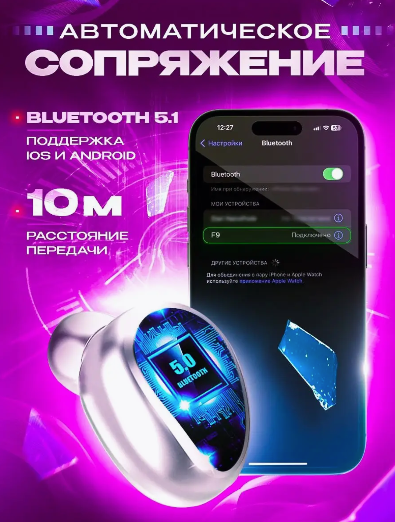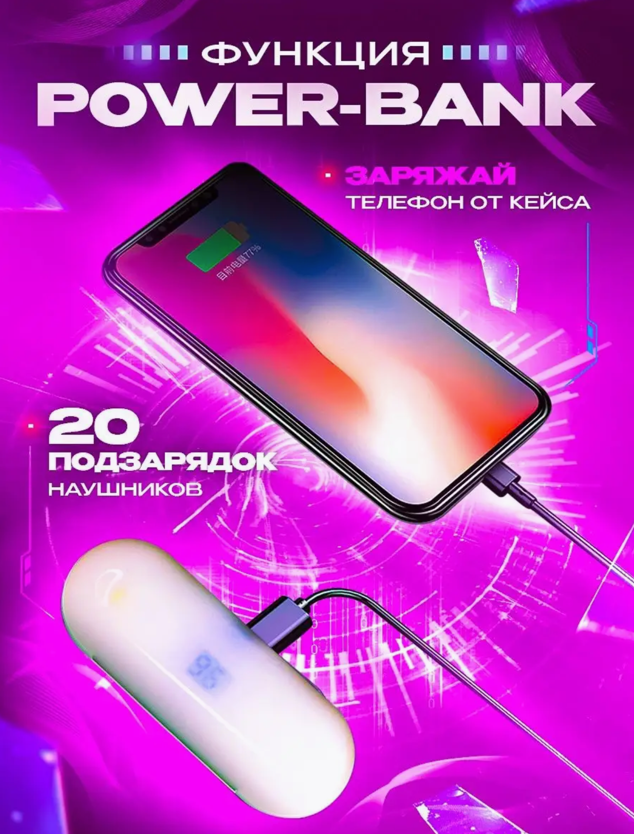 Наушники беспроводные / наушники сенсорные с powerbank / наушники F9 вакуумные/белые/прозрачная крышка интересное: