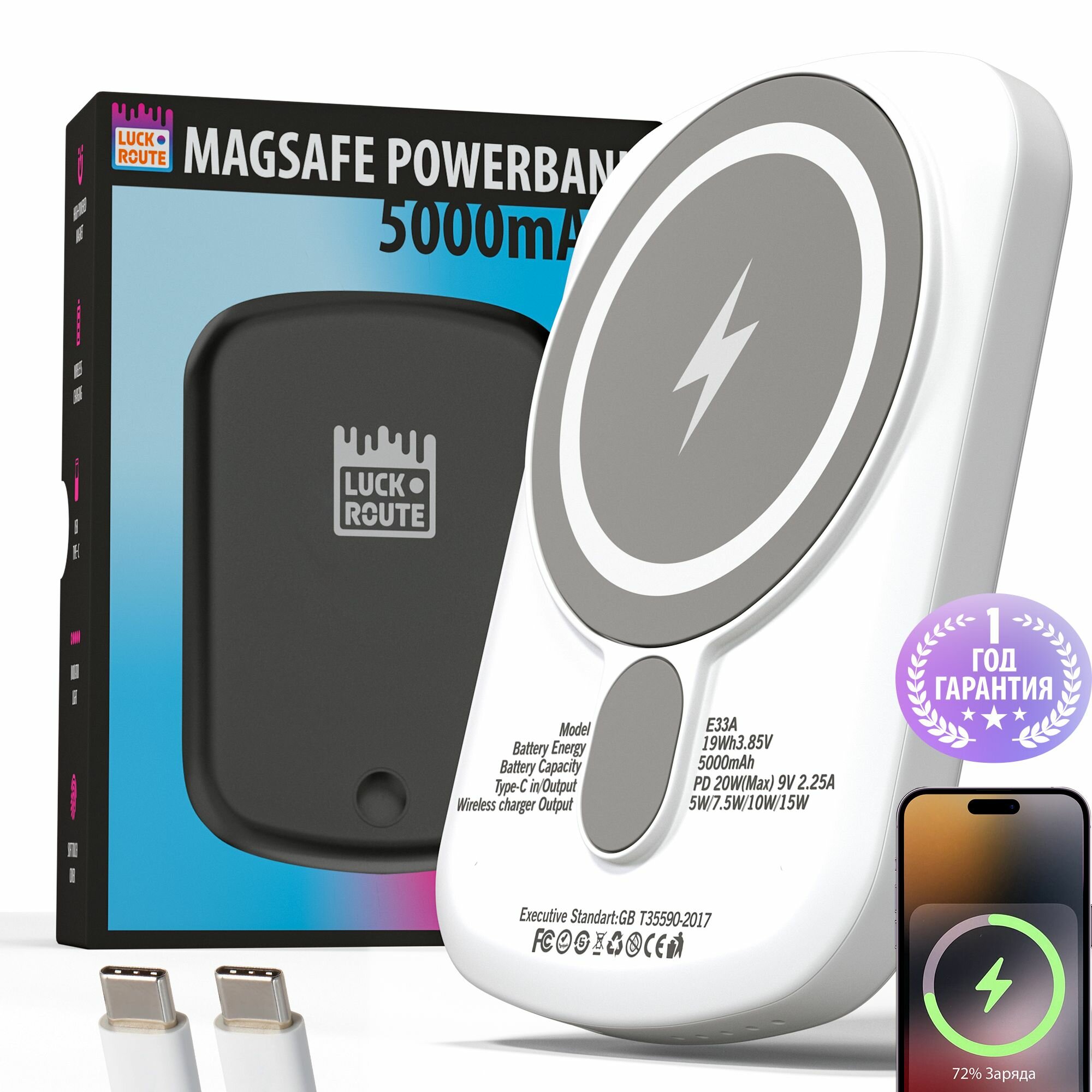 СохранитьМагнитный пауэрбанк 5000 mAh Luckroute MagSafe Power Bank для телефона, с быстрой беспроводной зарядкой, полностью совместим с iPhone 12/13/14/15 интересное: