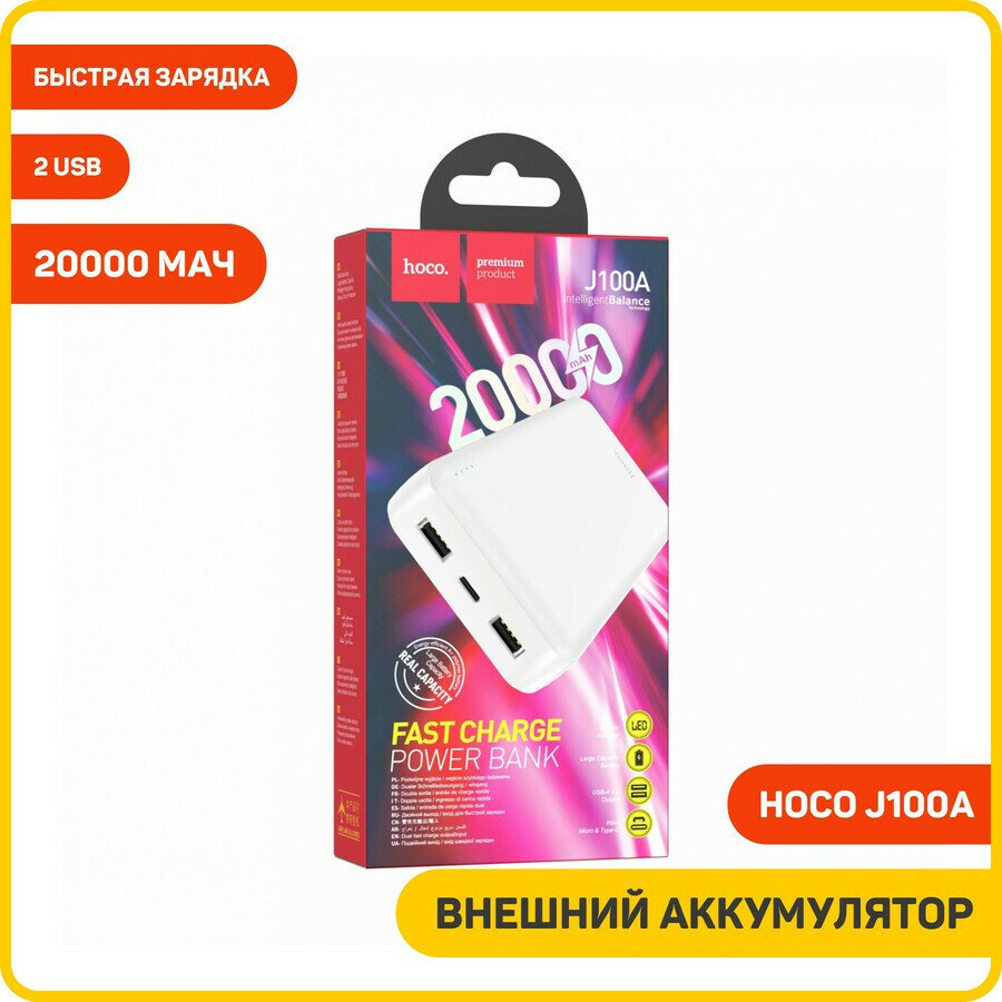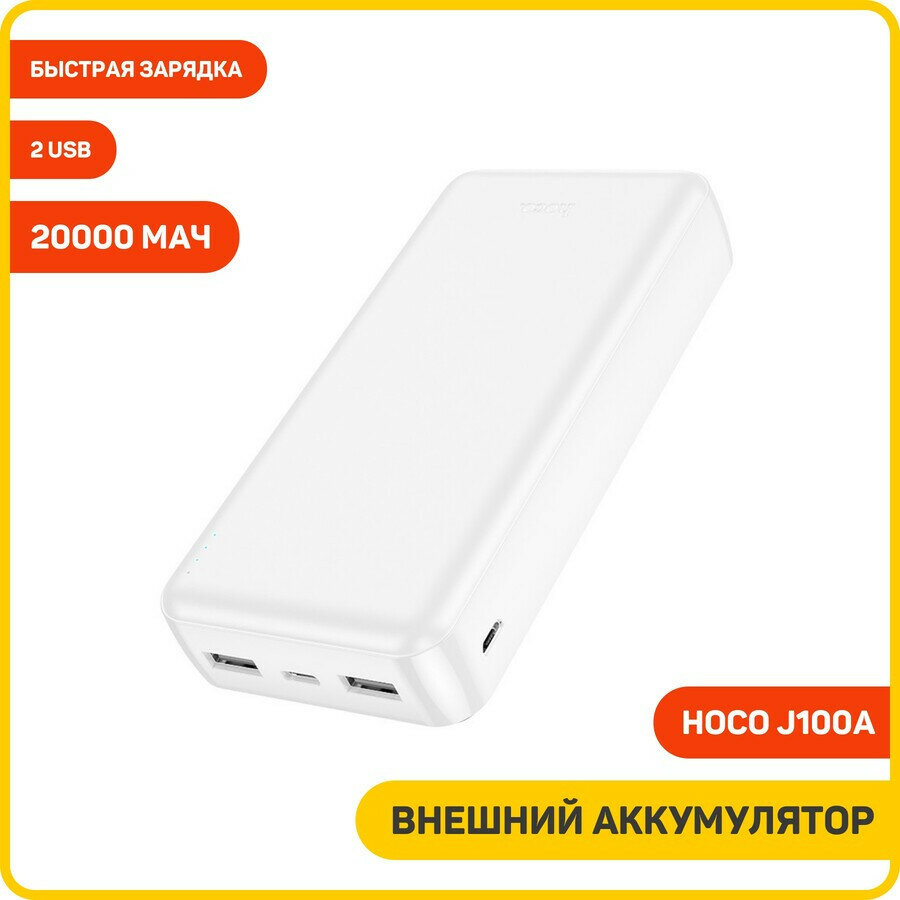 Внешний аккумулятор Hoco J100A, белый (20000 mAh, 2xUSB, 2.1A)