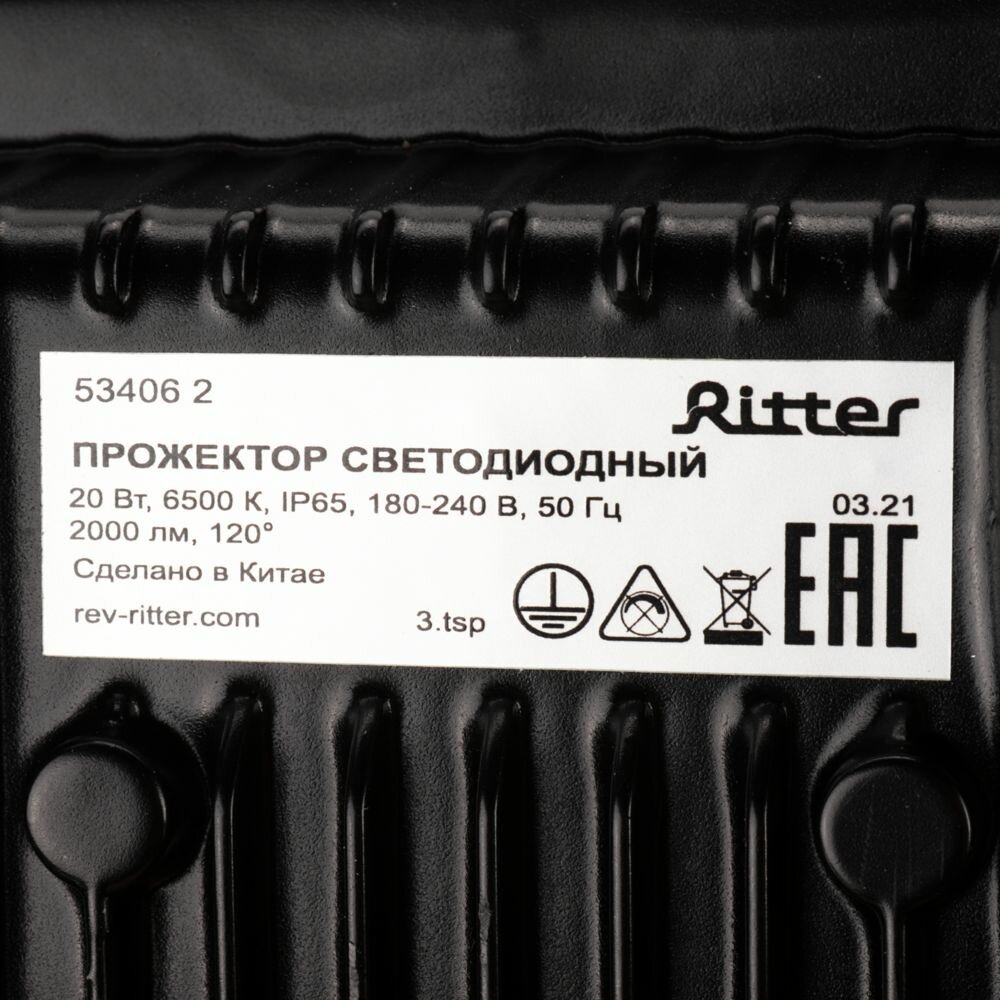 Прожектор светодиодный PROFI 20Вт, 180-240В, IP65, 6500К, 2000Лм, черный, Ritter, 53406 2