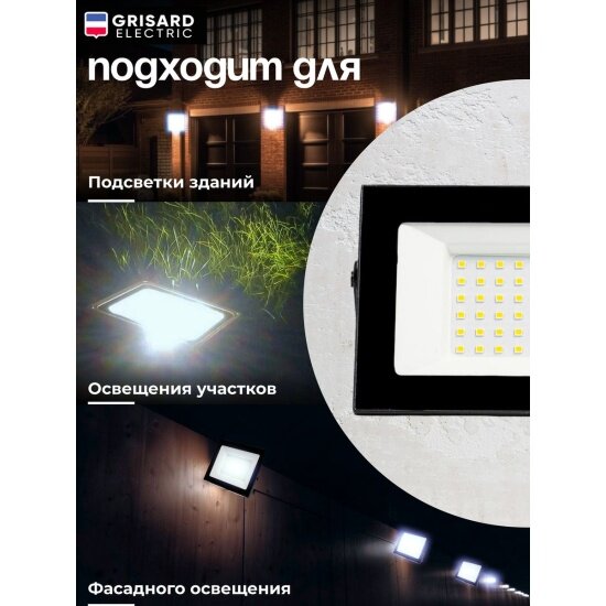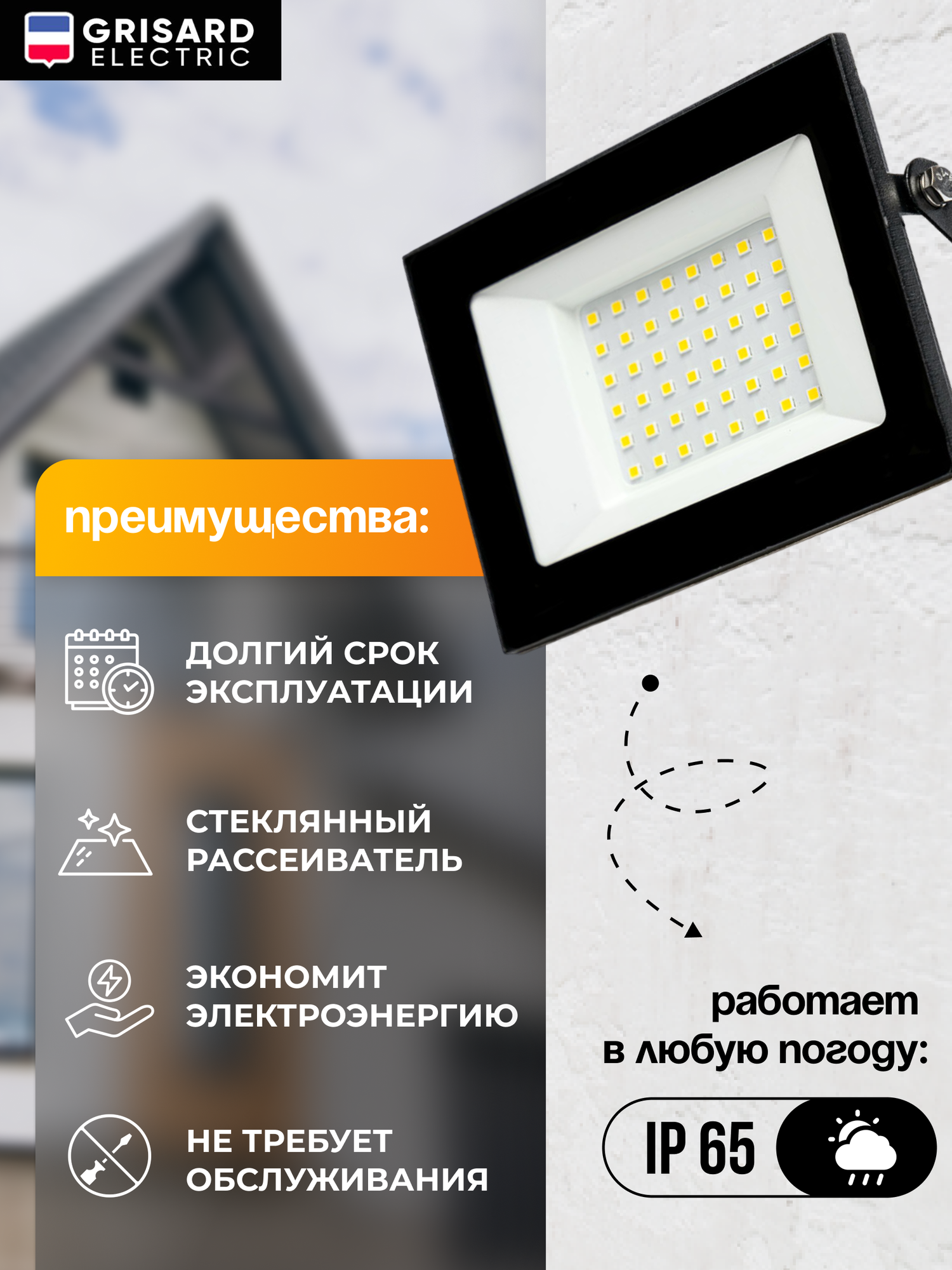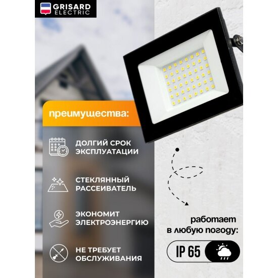 Grisard Electric прожектор уличный сдо 50 светодиодный черный ip65 6500 k GRE-004-0002 .