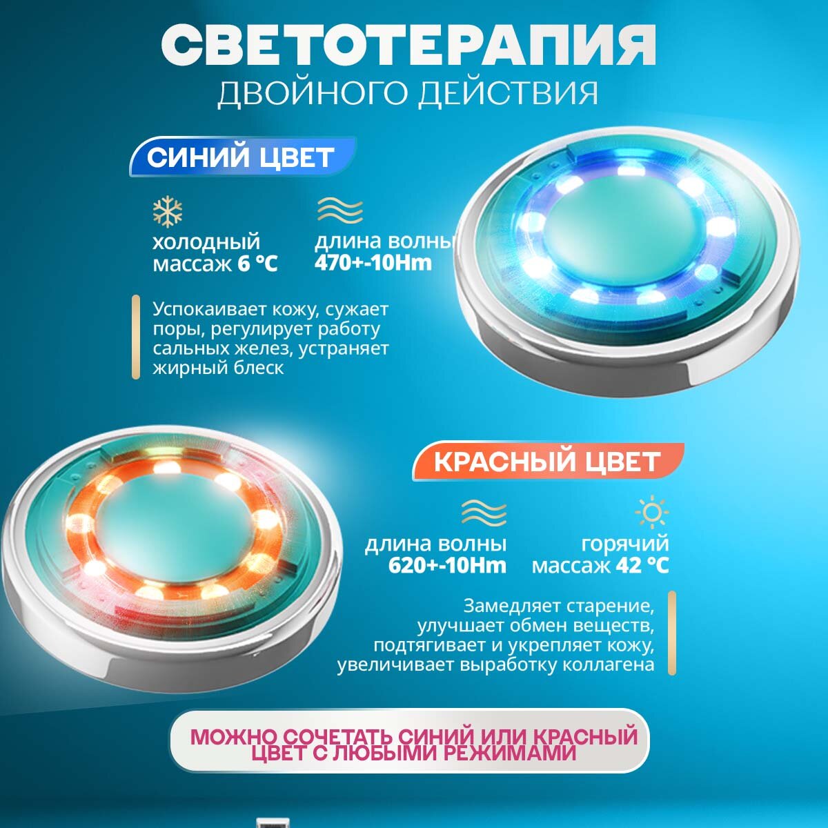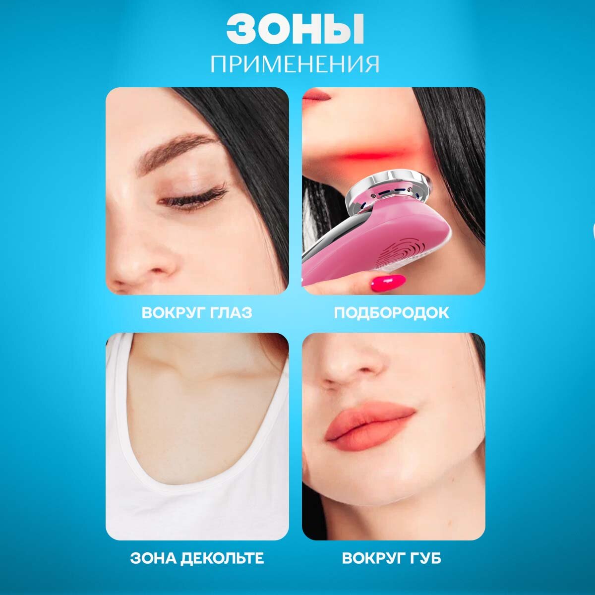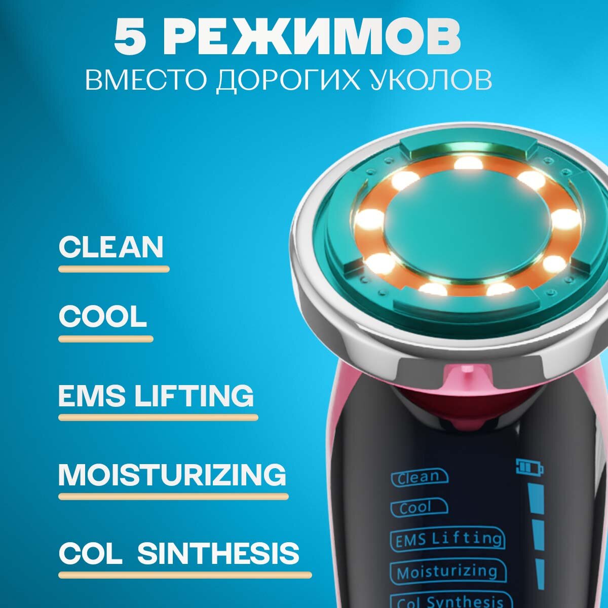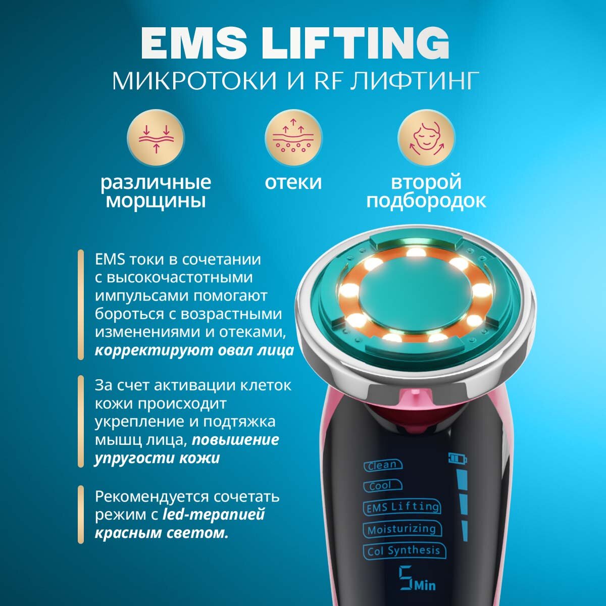| Принцип работы | RF-лифтинг / ионизация / микротоки / светотерапия / ультразвук |
