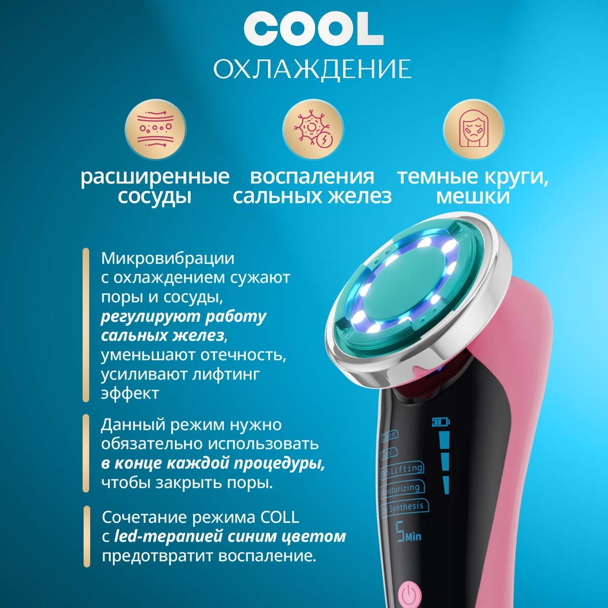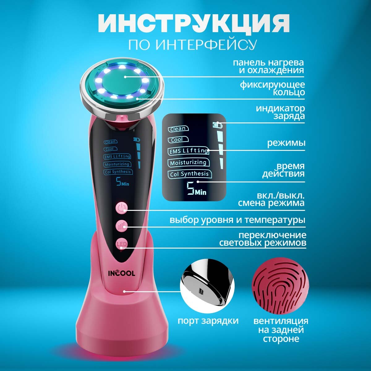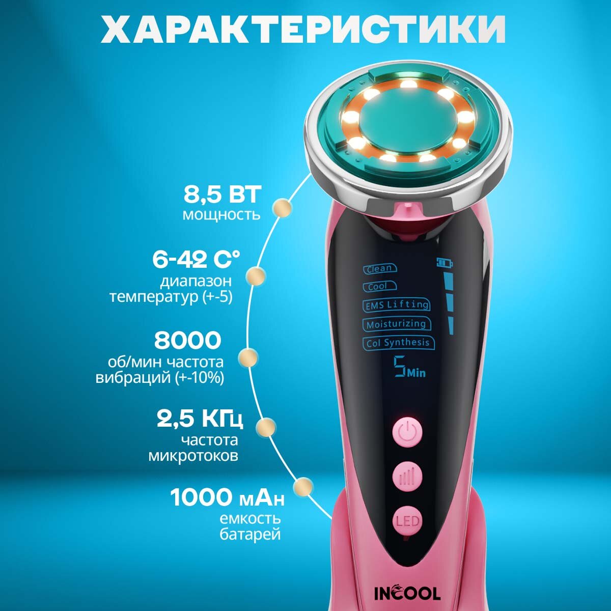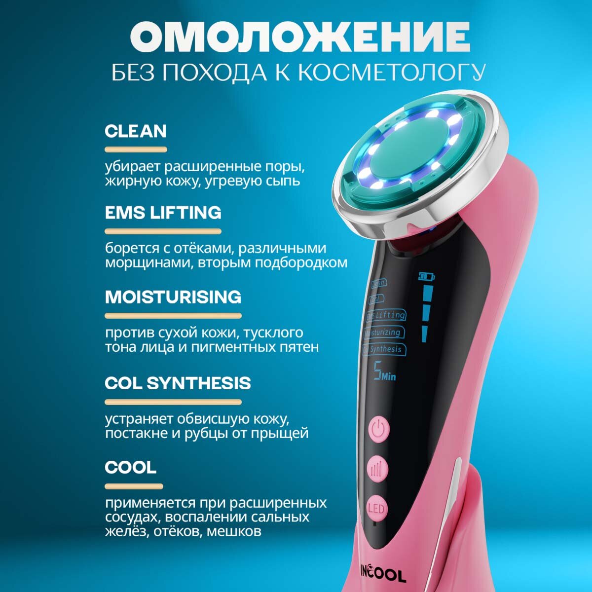 Микротоковый массажер для лица лифтинг аппарат для омоложения кожи INCOOL 5 в 1 розовый интересное: