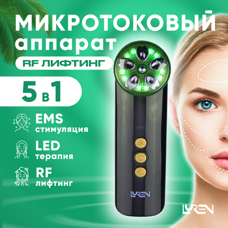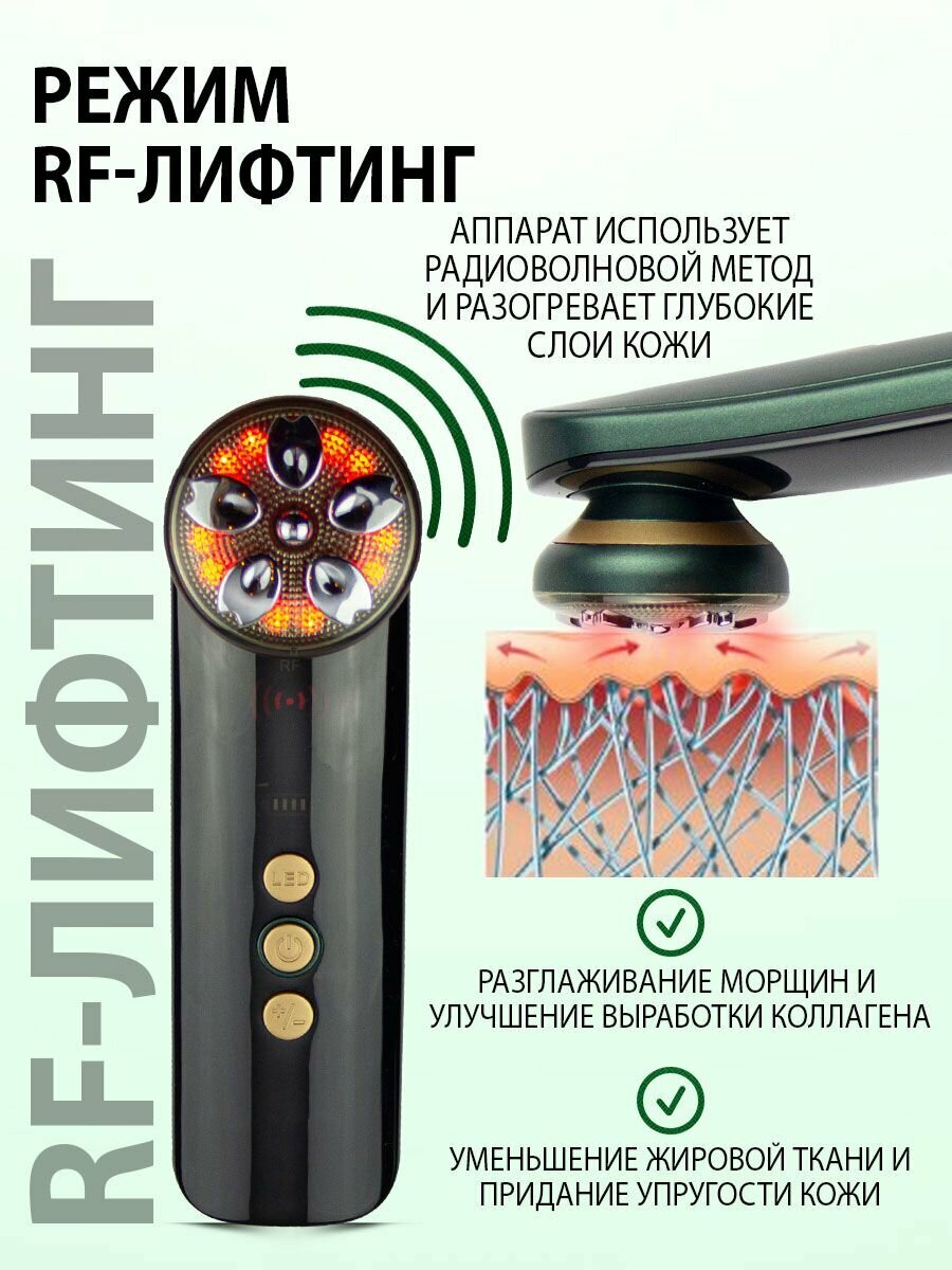 Микротоковый массажер для подтяжки лица и шеи Rf лифтинг аппарат от морщин 5 в 1 Led терапия омоложение, очищение