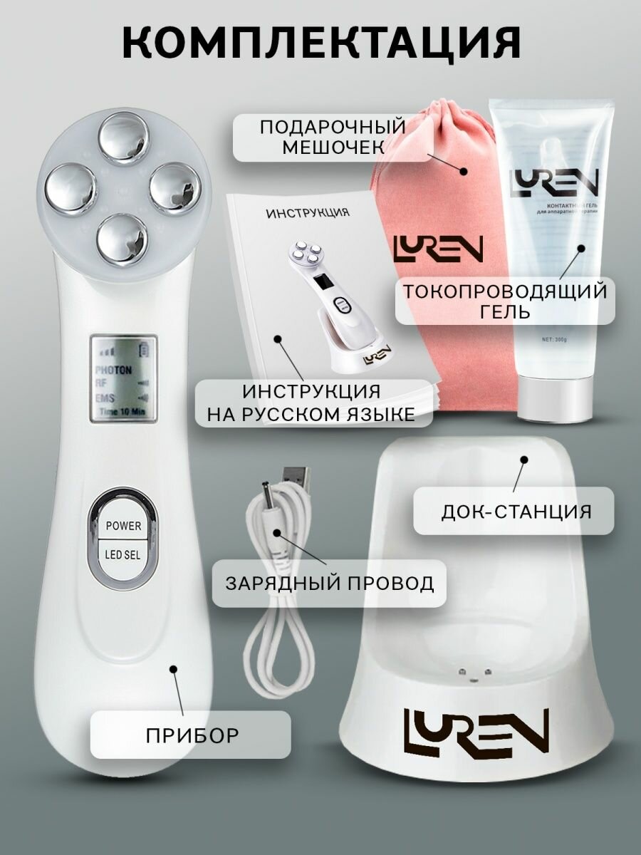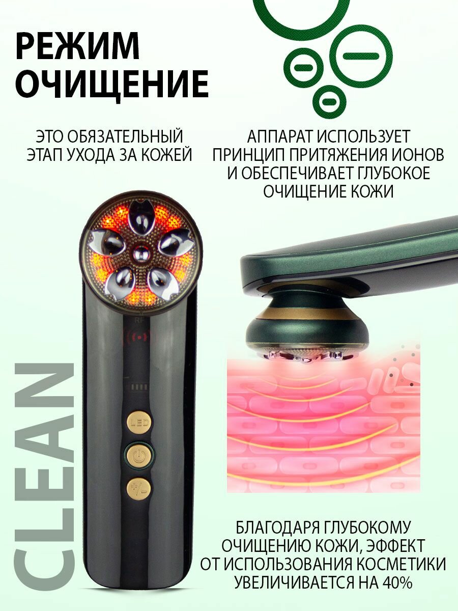 Микротоковый массажер для подтяжки лица и шеи Rf лифтинг аппарат от морщин 4 в 1 Led терапия омоложение, очищение, токопроводящий гель в подарок, косметология домашний уход, регенерация коллагена, борьба с угревой сыпью