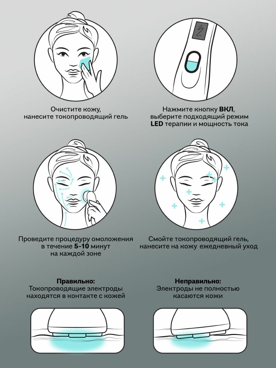 | Плюсы: | Удобный в эксплуатации гаджет, эффект виден практически сразу, если реально есть возрастные изменения, долго держит заряд. Есть увеличение и уменьшение силы подачи того или иного импульса, у всех чувствительность разная |