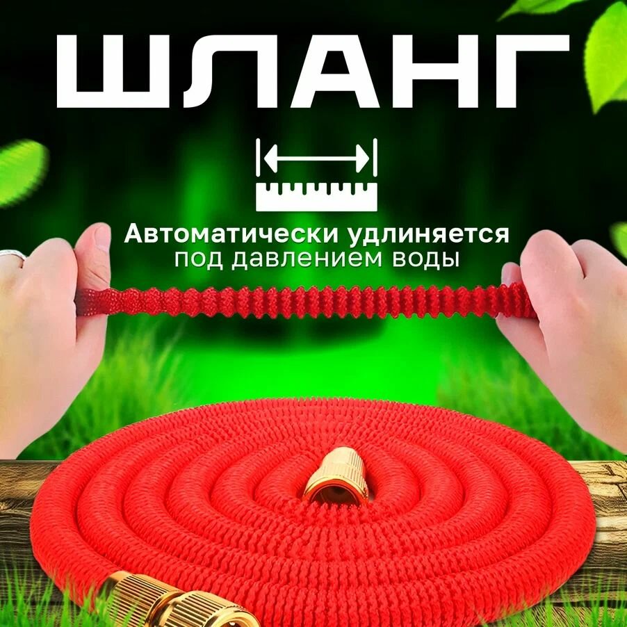 Шланг растягивающийся для полива 100 метров , красный / садовый шланг с насадкой-распылителем