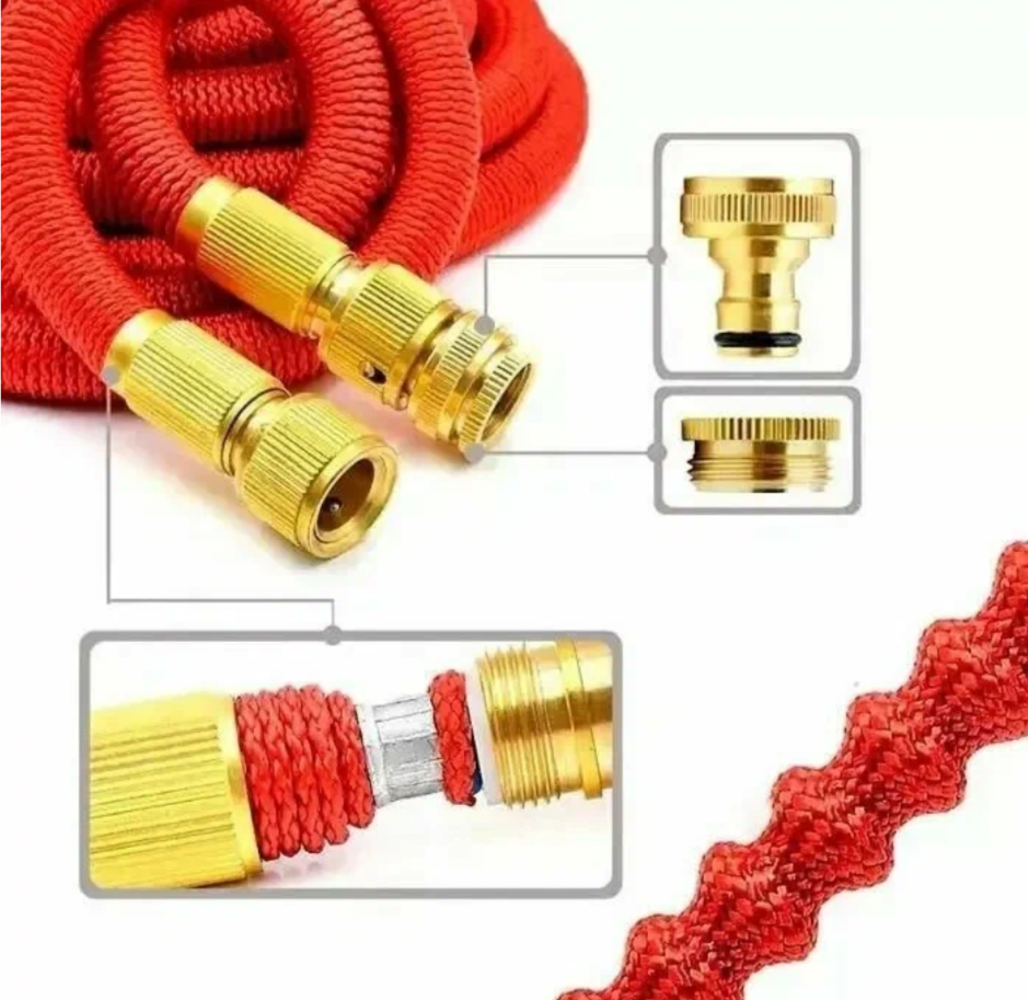 Шланг растягивающийся для полива "Magic Garden Hose" от 10 до 50 метров, с латунными разъемами и распылителем