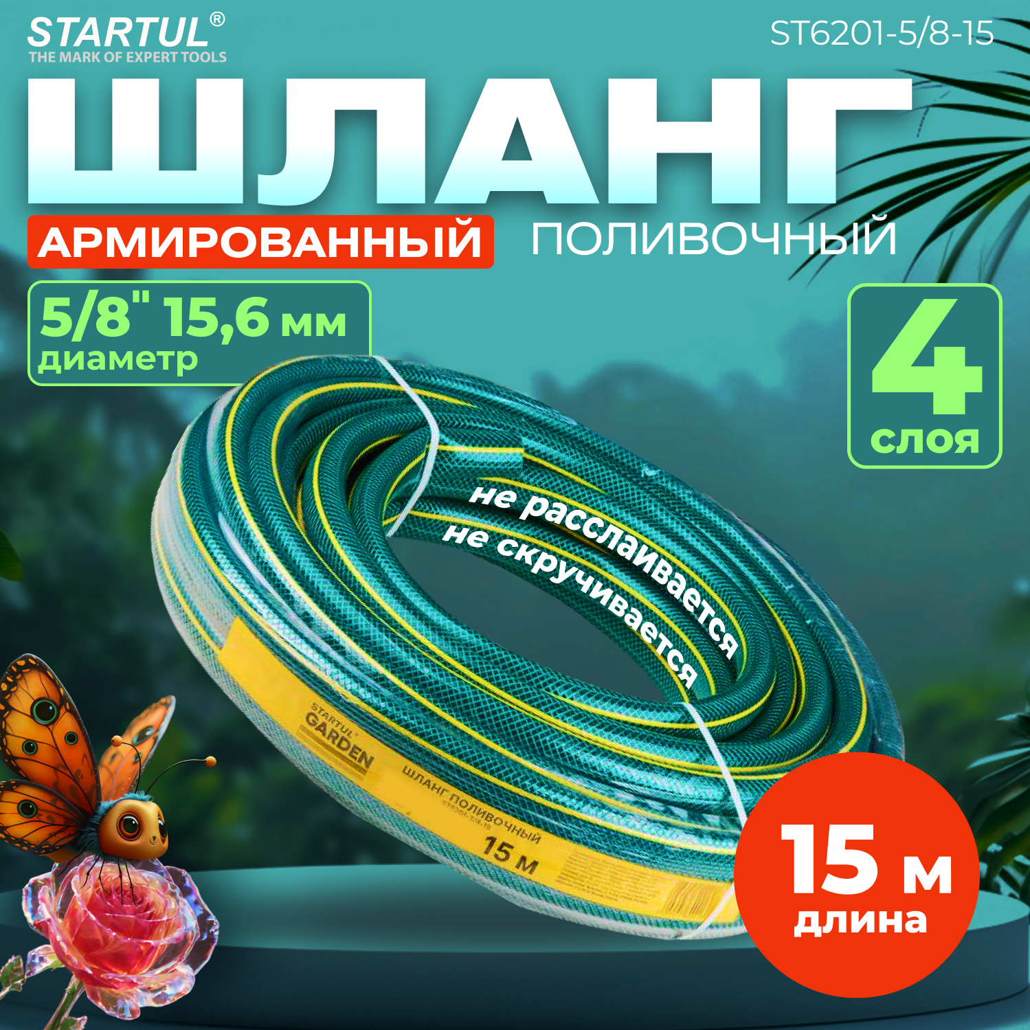 Купить Шланг поливочный армированный STARTUL Garden 5/8" 15 м, 4 слоя