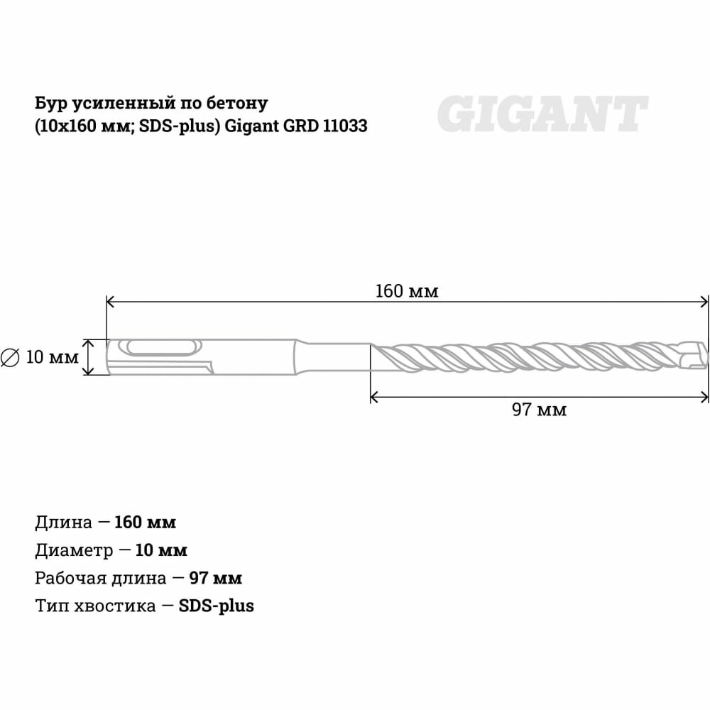 Бур усиленный по бетону (10x160 мм; SDS-plus) Gigant GRD 11033