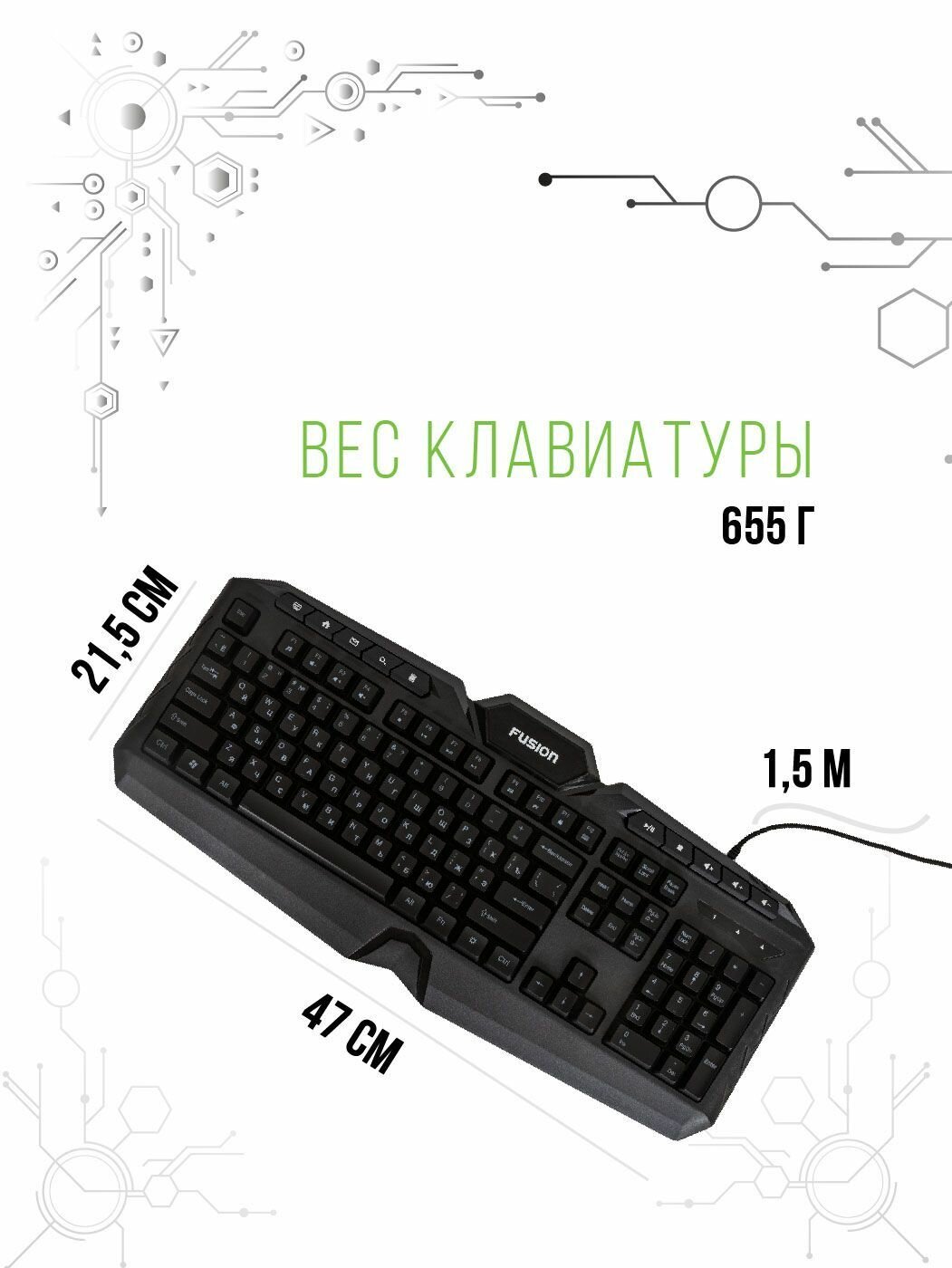 Клавиатура игровая FUSION мембранная для ПК, проводная с подсветкой, функция Anti-ghost, горячие клавиши