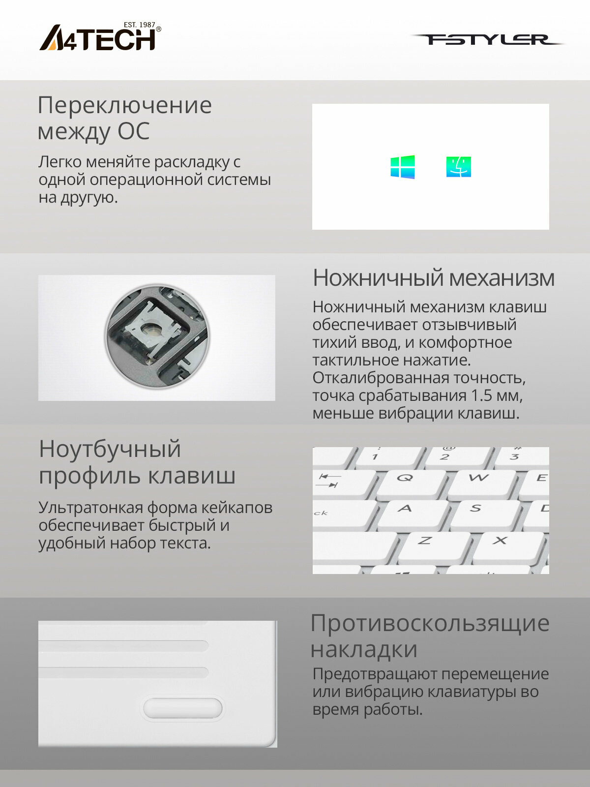 Клавиатура A4TECH Fstyler FX50, USB, белый [fx50 white]