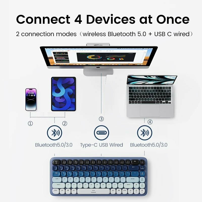 Клавиатура Ugreen KU101 FUN+ Mechanical Keyboard blue механическая usb-c/bluetooth