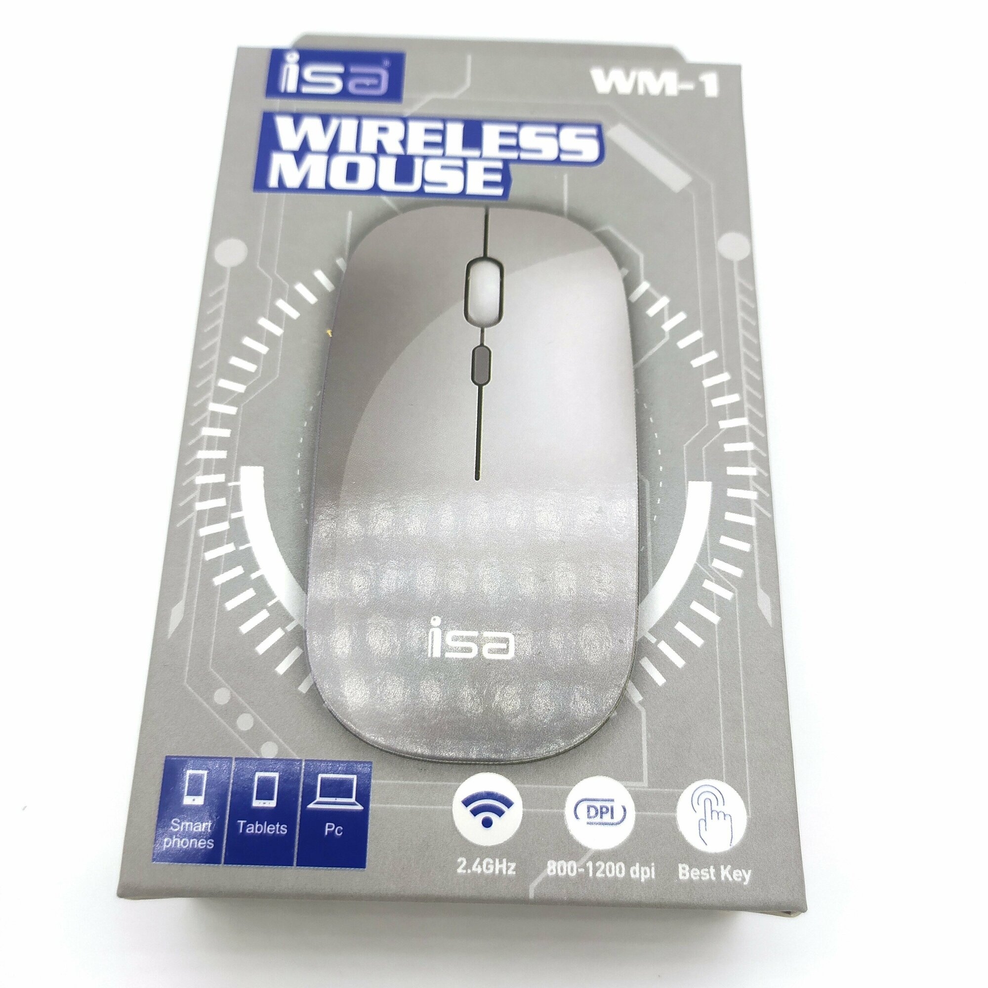 Мышь беспроводная оптическая ISA WM-1, 500 mah, Plug & Play, Серебристый