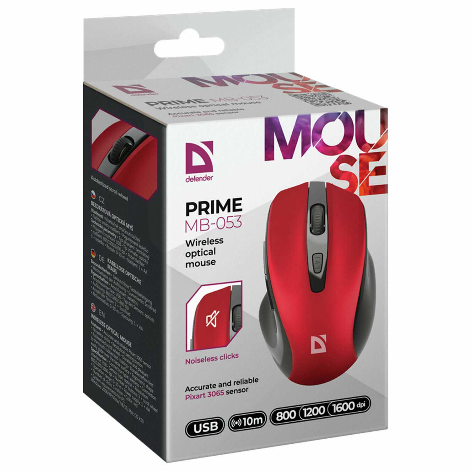 Беспроводная оптическая мышь Defender Prime MB-053 красный,6D,800-1600dpi, бесшумная