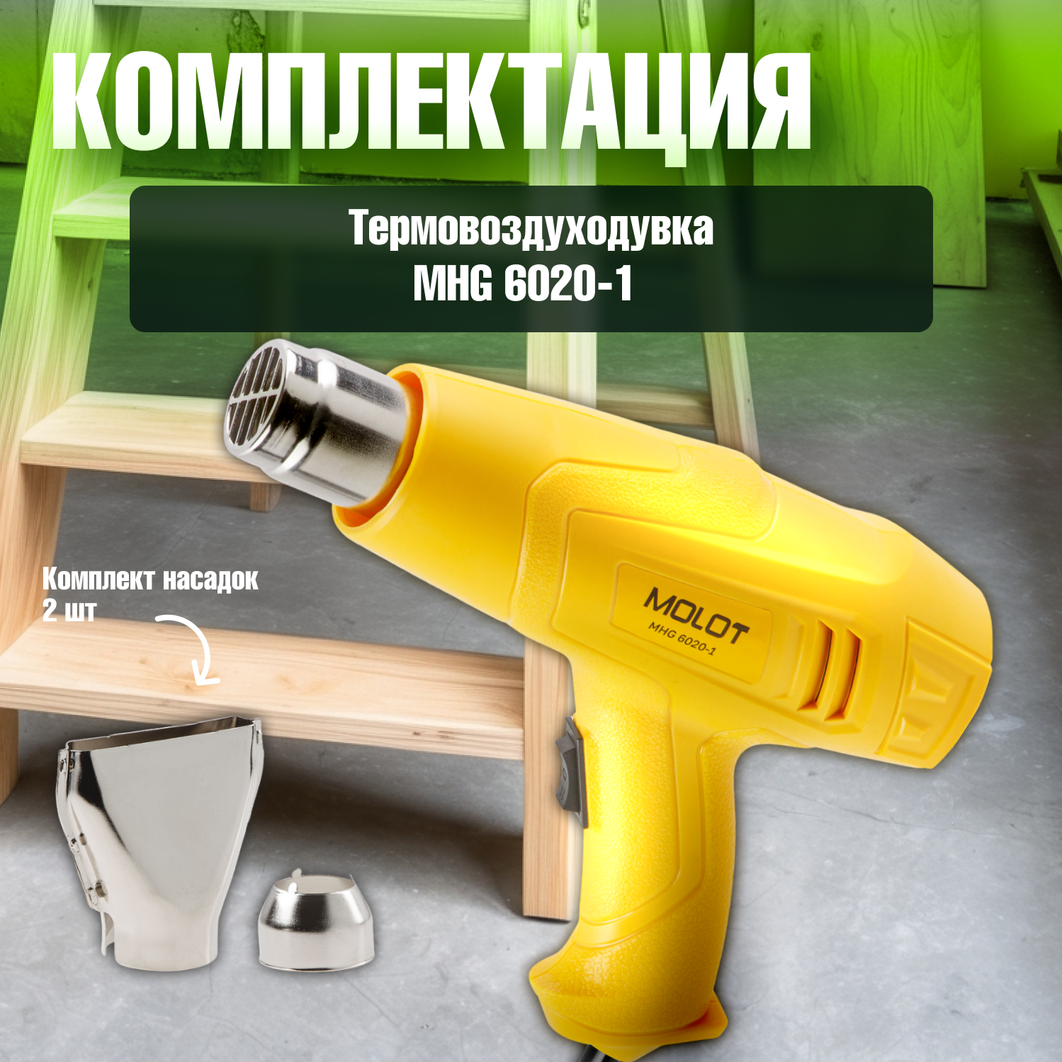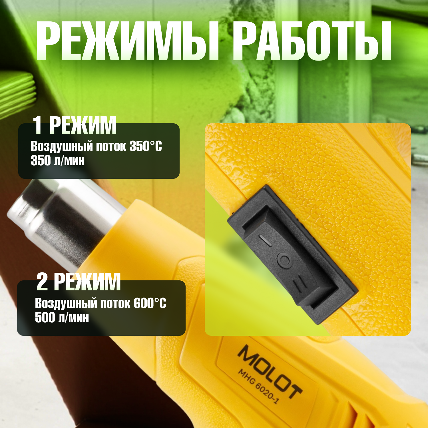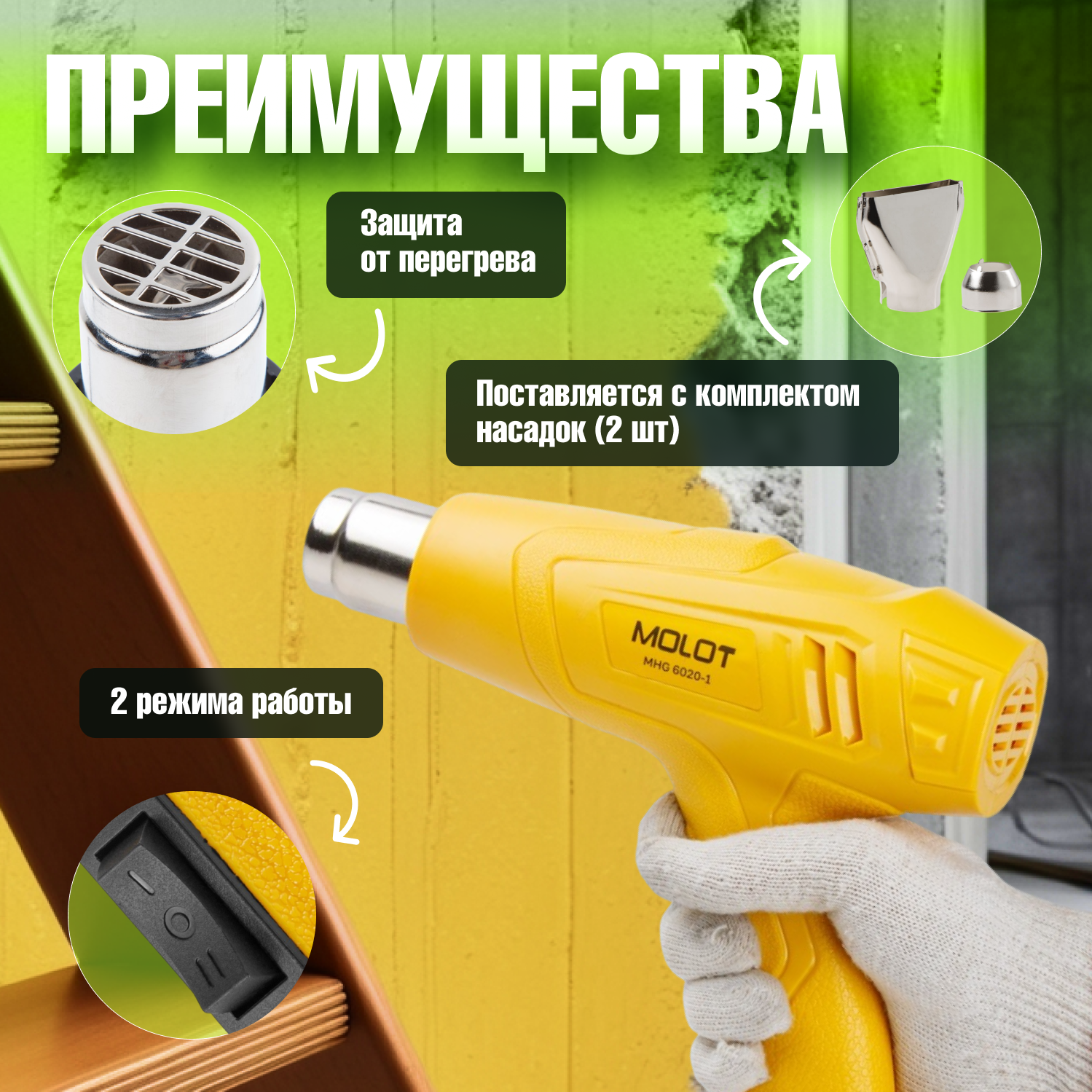 Купить Фен строительный (термовоздуходувка) с 2 насадками MOLOT MHG 6020-1 (0334325)