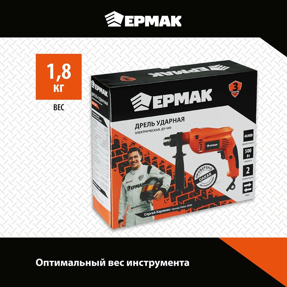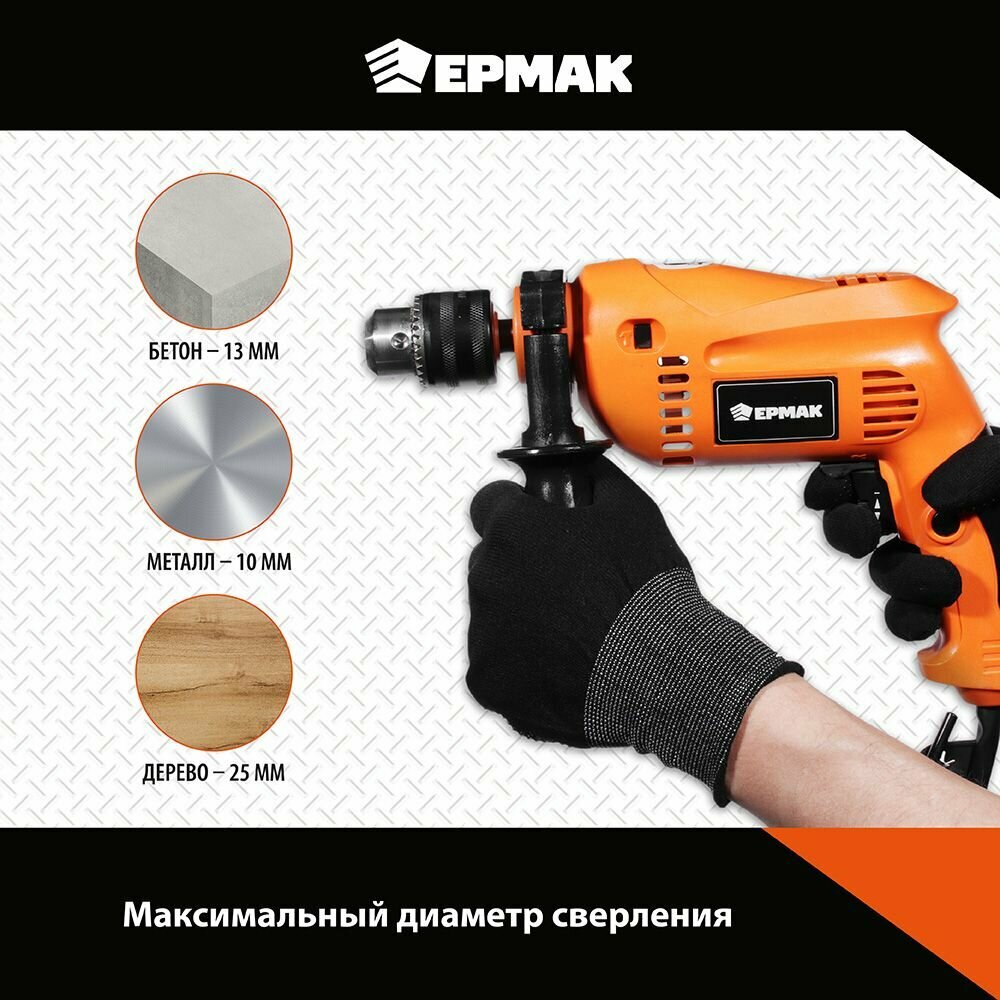 Ударная дрель Ермак ДУ-500 2019, 500 Вт оранжевый интересное: