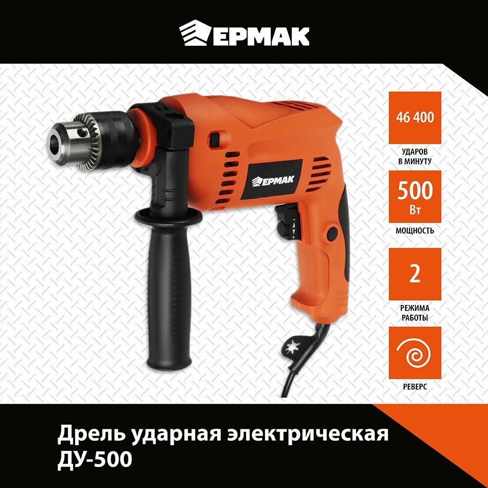 Дрель ударная ермак ДУ-500, 500Вт
