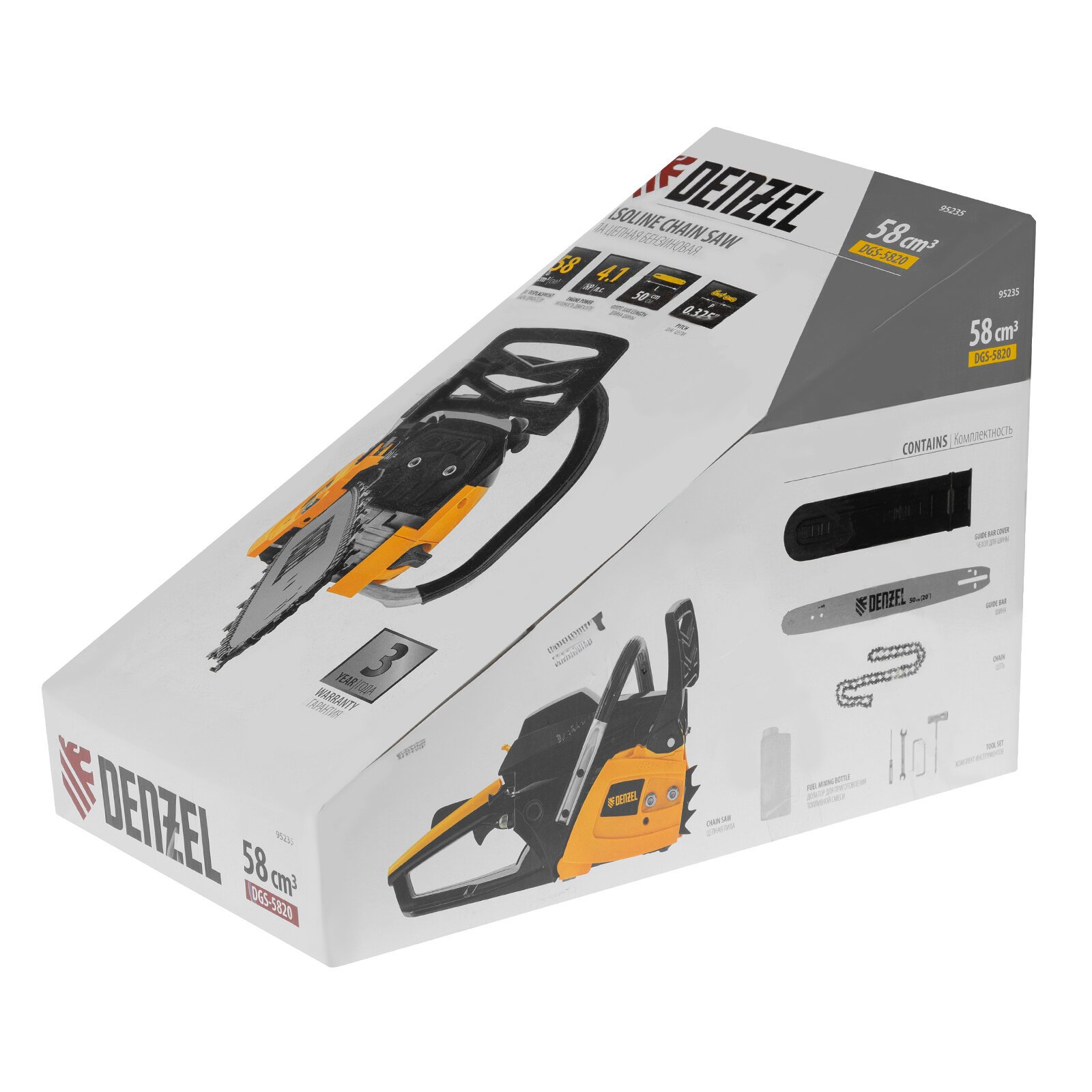 Купить Пила цепная бензиновая Denzel DGS-5820 шина 50 см, 58см3, 4, 1 л.с., шаг 0, 325, паз 1, 5 мм, 76 зв 95235