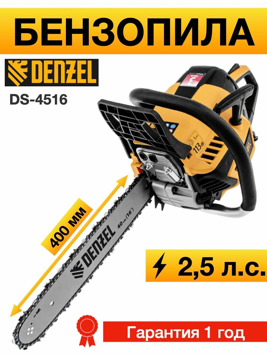 Пила цепная бензиновая DS-4516, шина 40 см, 45 см3, 2,5 л. с, шаг 0,325, паз 1,5 мм, 64 звена Denzel