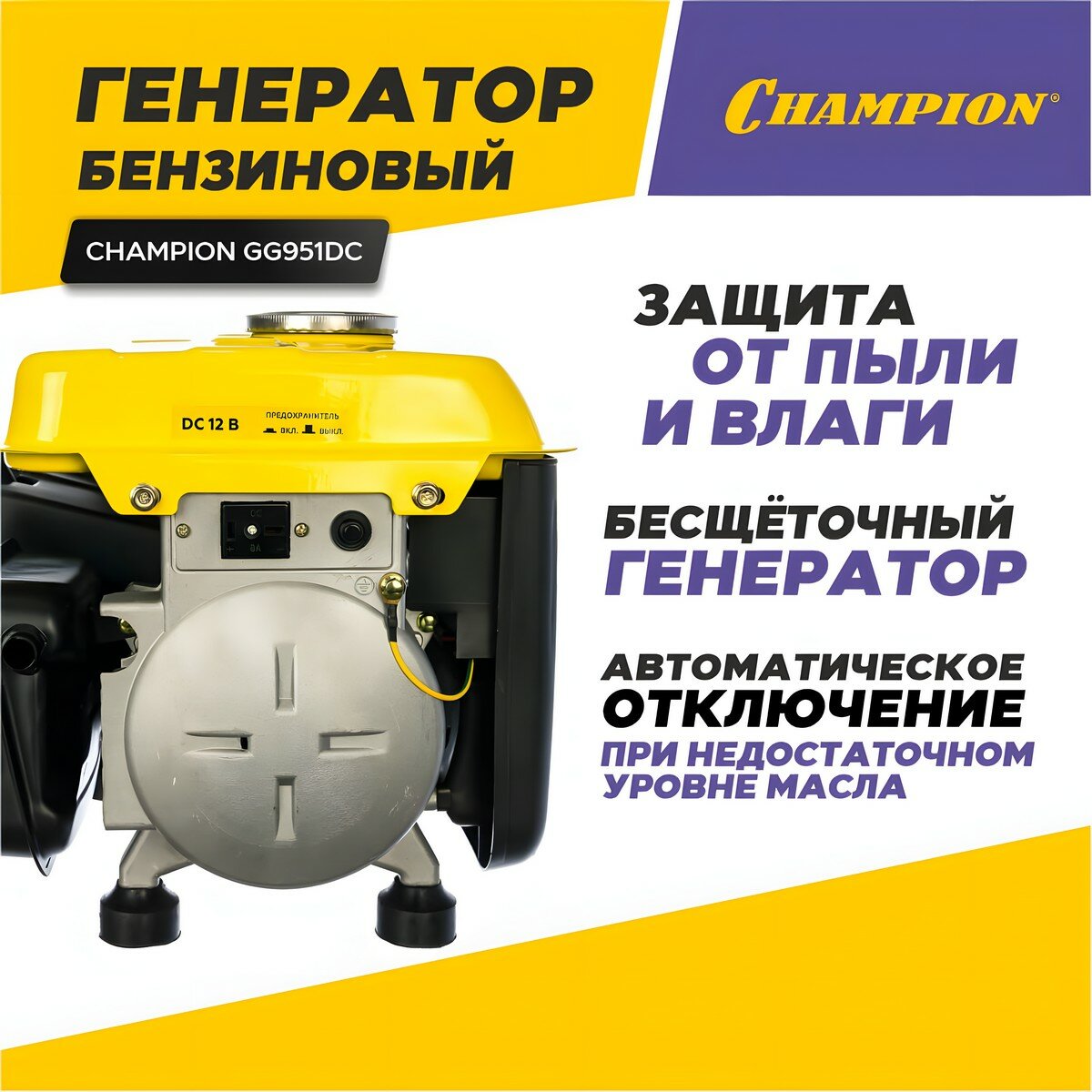 Бензиновый генератор CHAMPION GG951DC, (720 Вт)