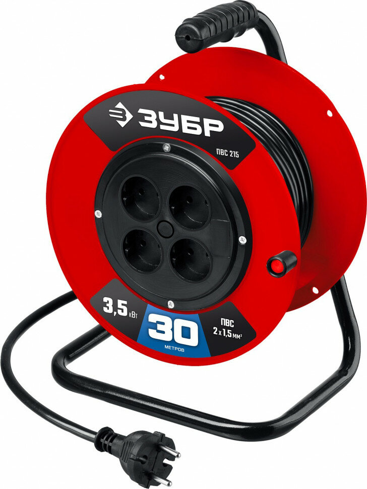 Силовой удлинитель на катушке ЗУБР ПВС 2х1.5 50м 3500Вт, ПВС 215