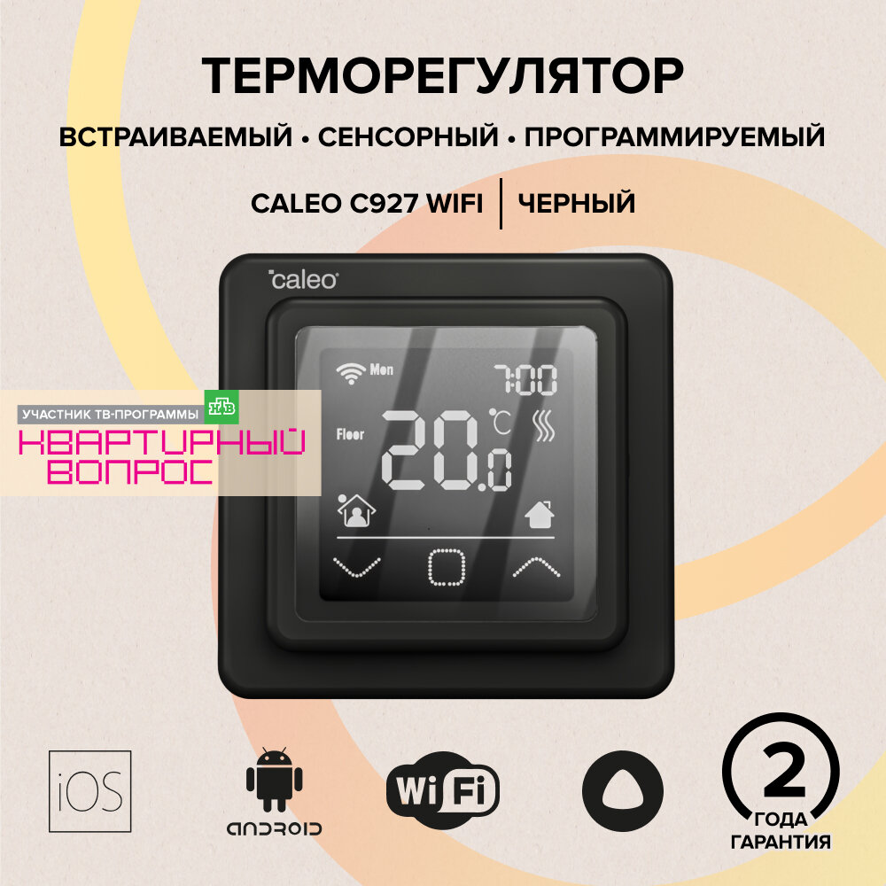 Терморегулятор встраиваемый цифровой программируемый CALEO C927 WI-FI (черный)
