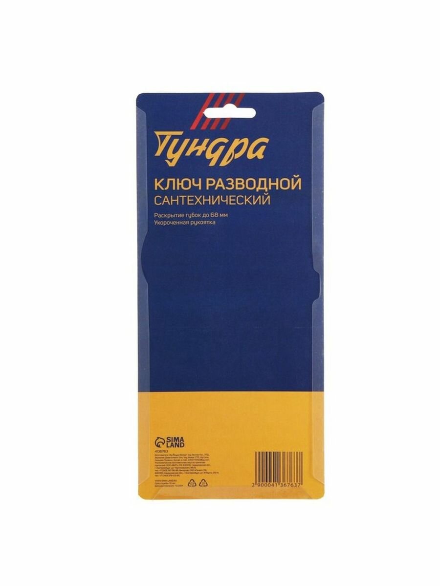 Ключ разводной сантехнический тундра, укороченная рукоятка, раскрытие губок до 68 мм, 1 шт. интересное:
