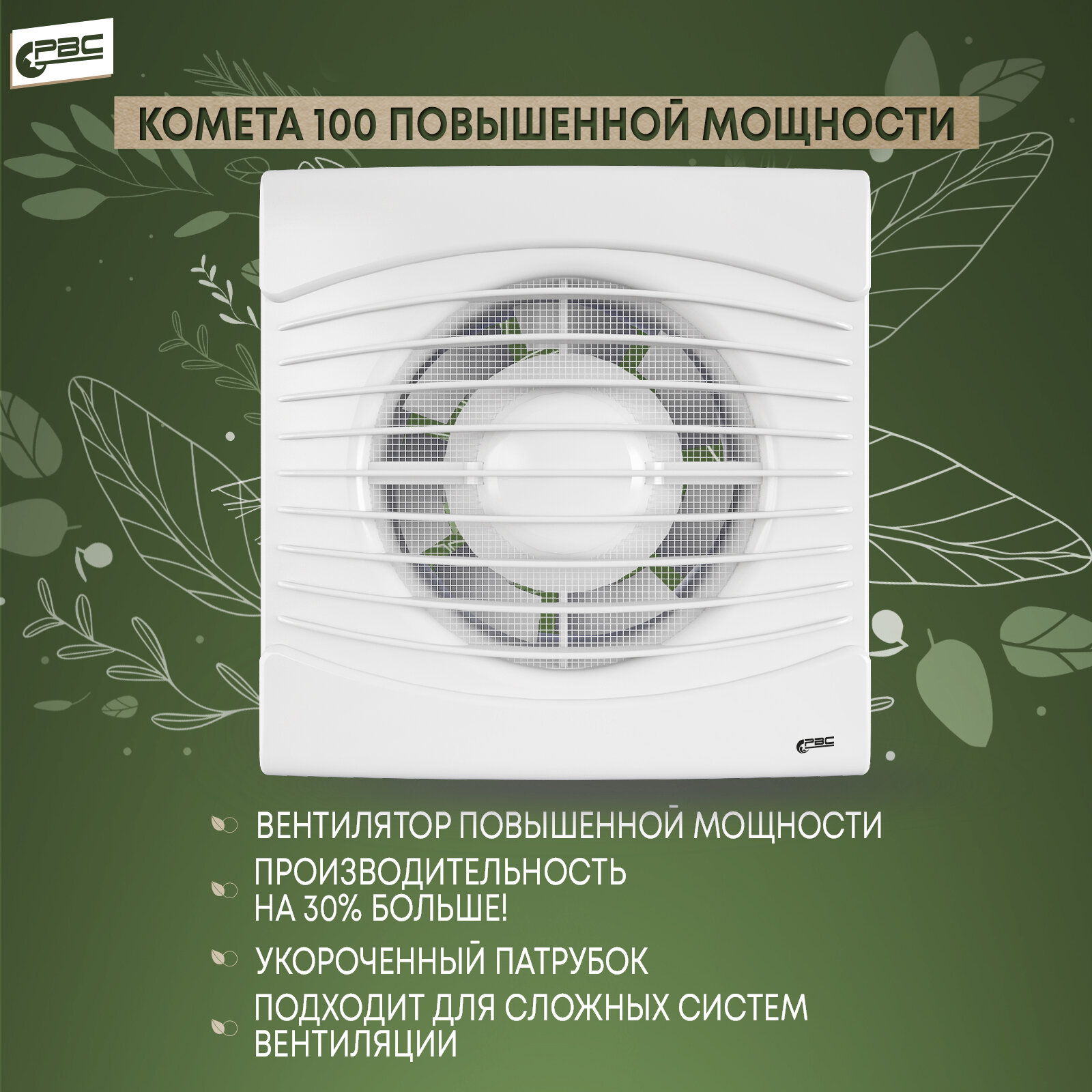 Вентилятор вытяжной Рвс Комета 100 повышенной мощности, 16 Вт, 36 дБ, 123 м3/ч