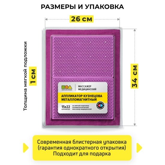 Массажный коврик Аппликатор Кузнецова металломагнитный на мяг.подложке, 30х22см, фиолетовый интересное: