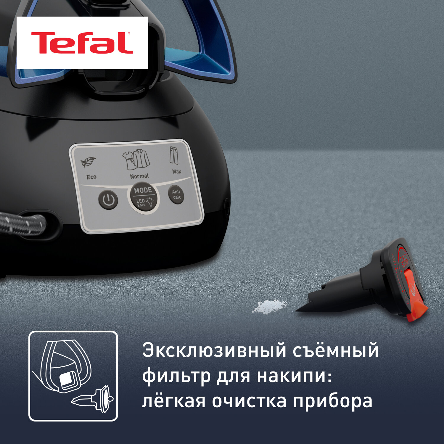 Парогенератор Tefal Express Vision SV8151E0 с паровым ударом 500 г/мин, умной LED-подсветкой, 2800 Вт, черный/синий интересное: