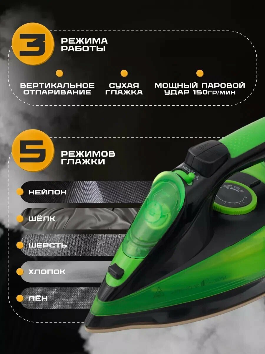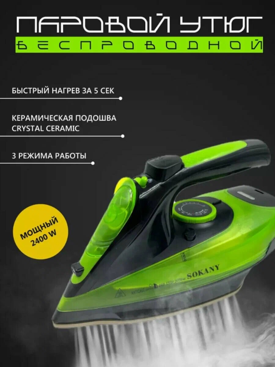 Утюг/Утюг качественный/Беспроводной/Качественный/Мощный 2400Вт/Зеленый