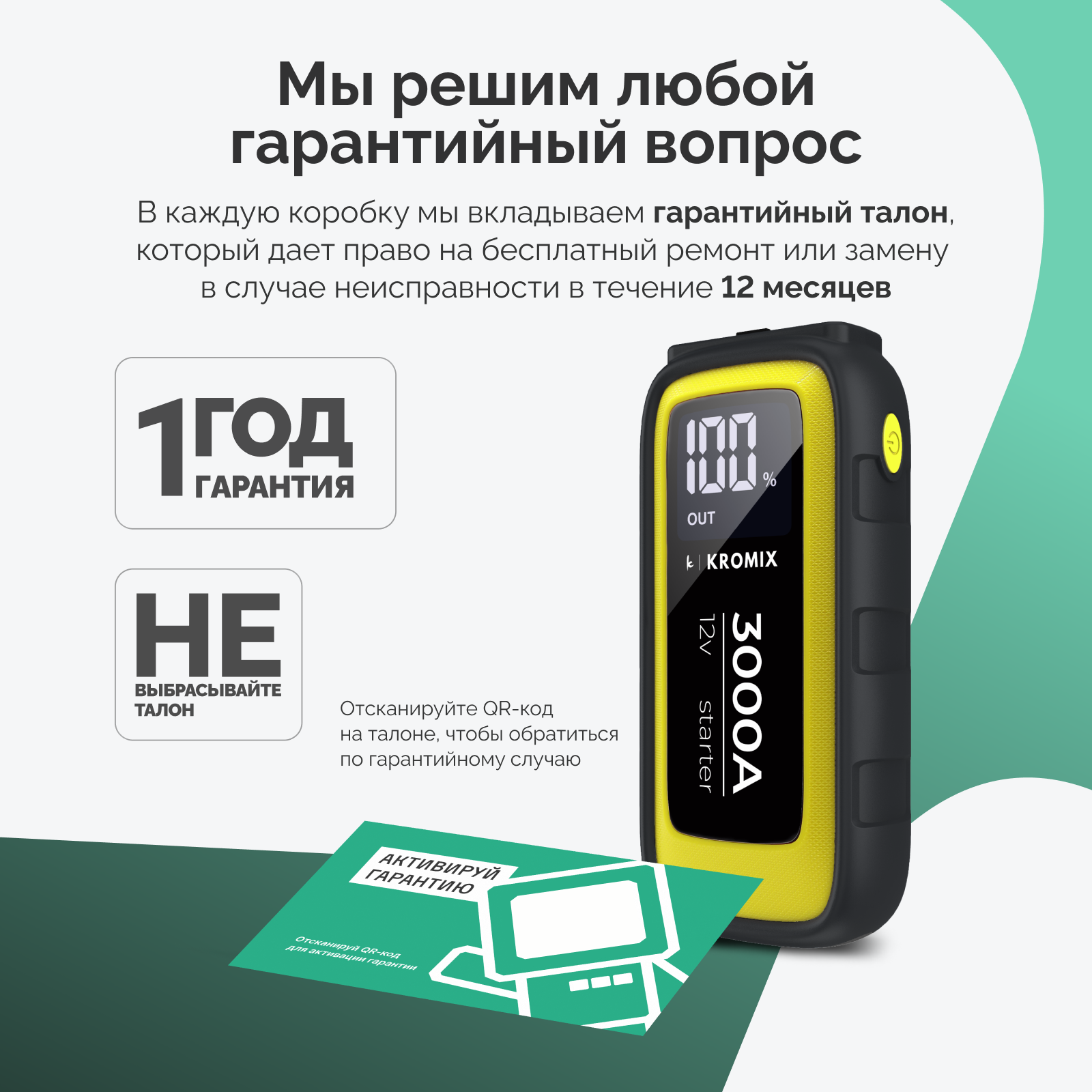 Пуско-зарядное устройство для автомобиля, KROMIX HELPER с Power Bank и LED фонарем