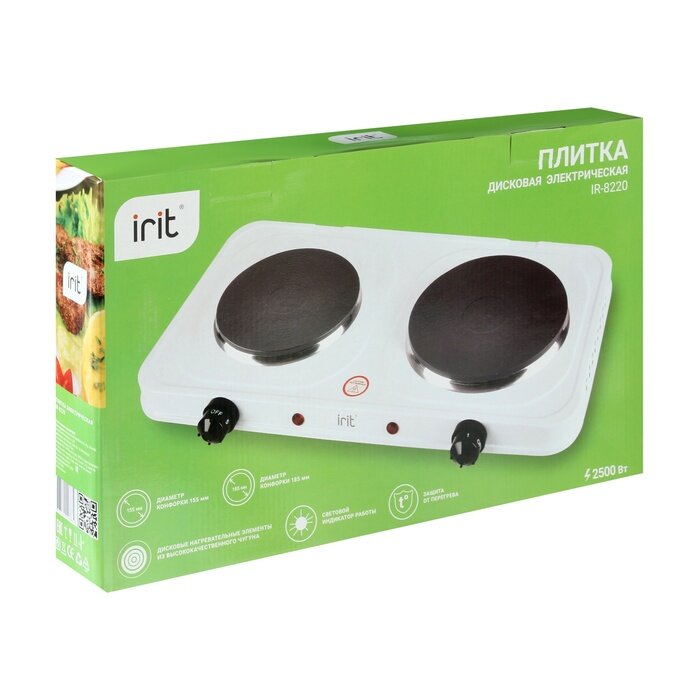 Плитка электрическая IR-8220, 2500 Вт, 2 конфорки, белая