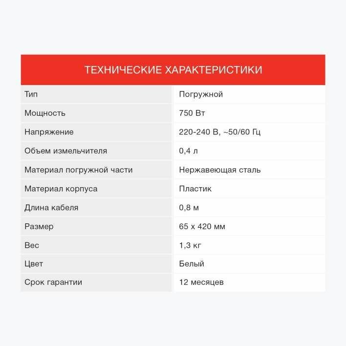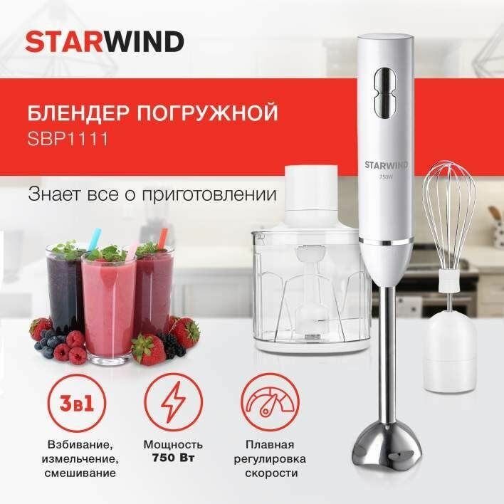 Погружной блендер Starwind SBP1111, 750 Вт, белый