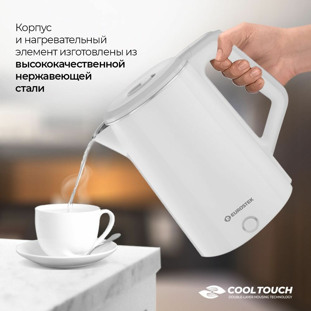 Чайник электрический Eurostek EEK-3028, пластик, колба металл, 2 л, 1500 Вт, белый