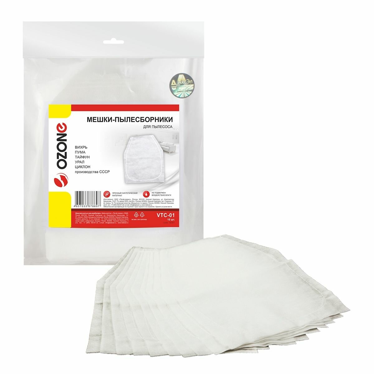 Синтетические мешки для пылесоса Ozone VTC-01, 10 шт, совместимы с моделями Вихрь, Пума, Тайфун, Урал, Циклон (СССР)
