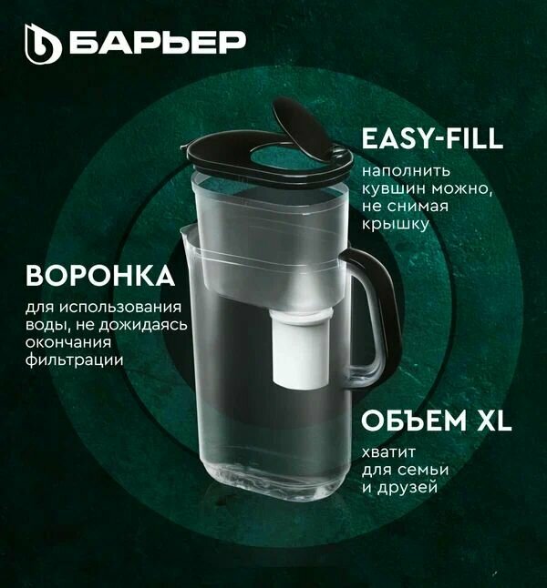 Купить Фильтр-кувшин "стайл" XL/эверест,черный+3кассеты "жесткость" БАРЬЕР