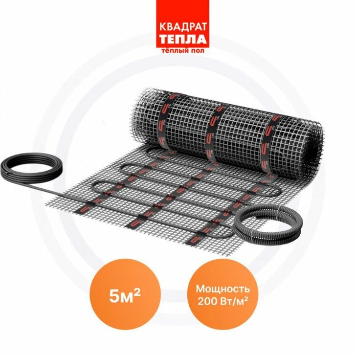 Теплый пол электрический под плитку Квадрат Тепла KM PLUS нагревательный мат 1 кв.м
