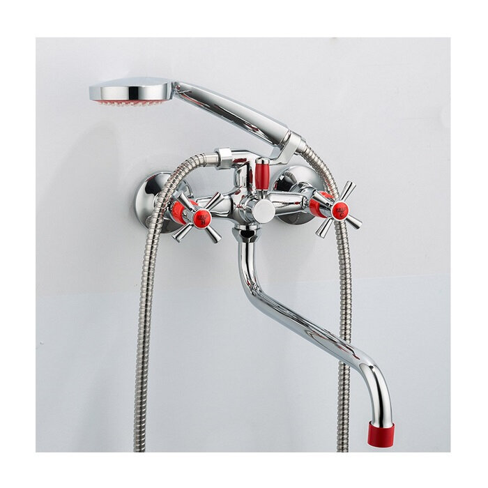 Смеситель с душевой лейкой Frud R118 R22118 color, серебристый/красный