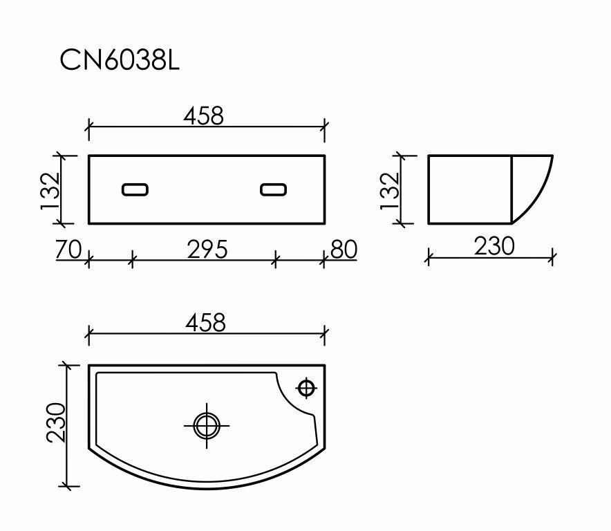 Умывальник подвесной прямоугольный с крепежом (чаша слева, отверстие под смеситель справа) Element 455*220*130мм CN6038L