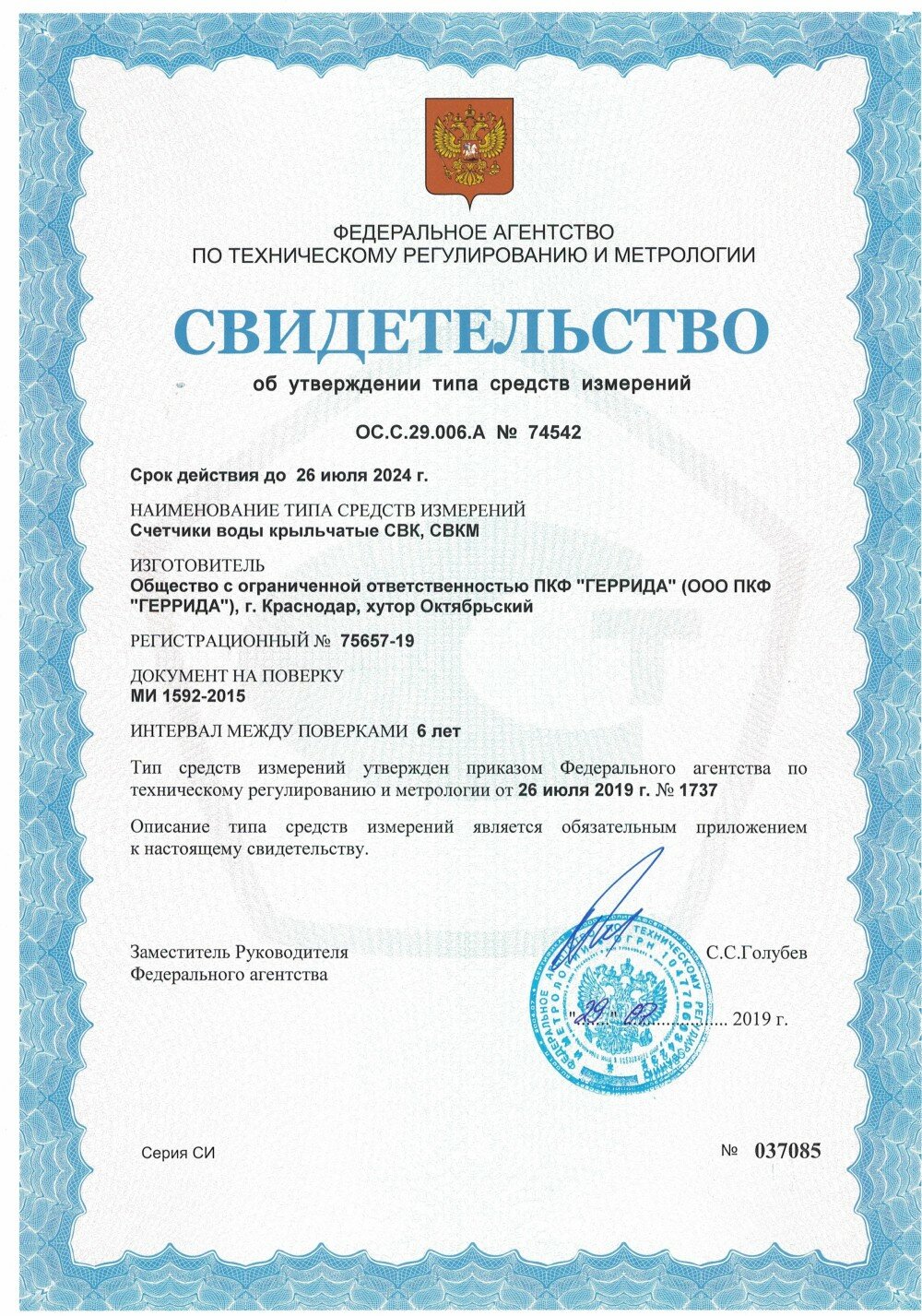 Счетчик воды GERRIDA СВК-15Г АМЗ без монт. комп. интересное: