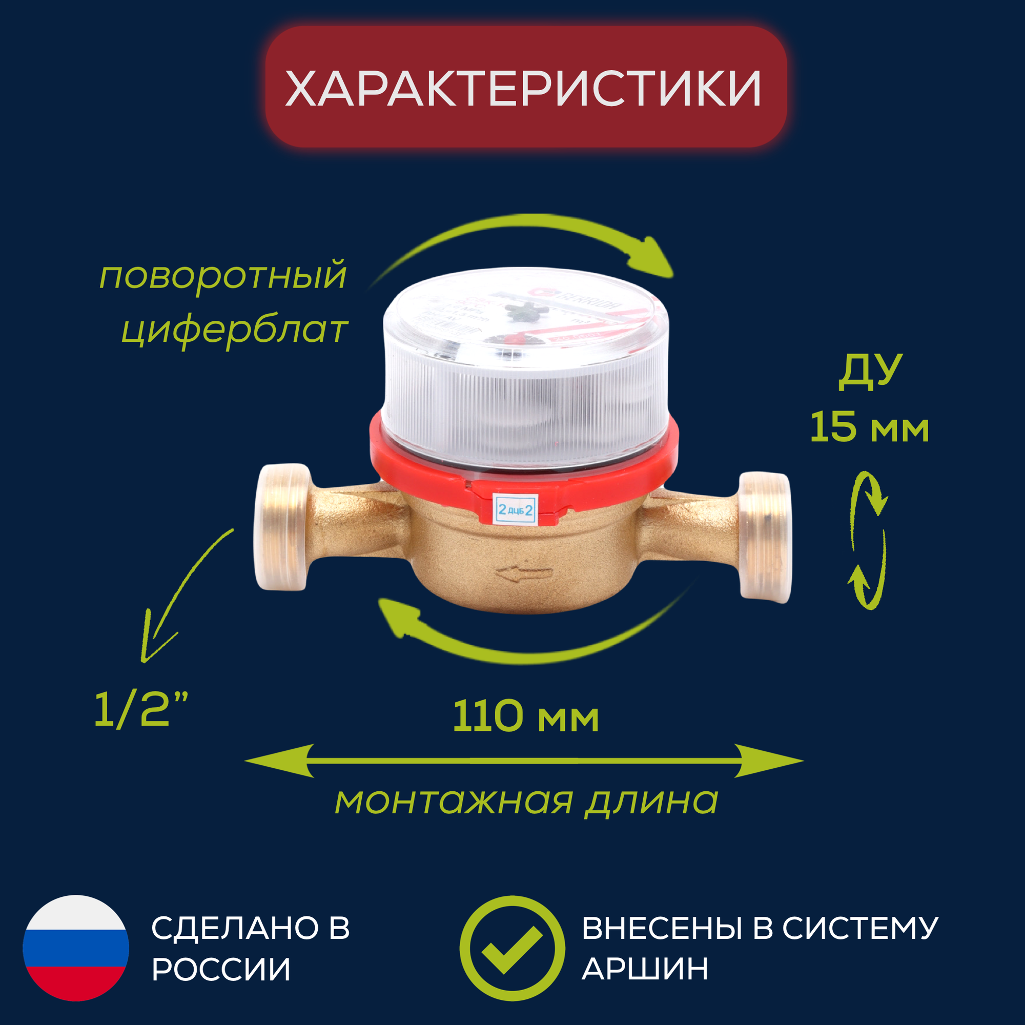 Счетчик учета воды Gerrida СВК-15 Казань с монтажным комплектом /счетчик для холодной и горячей воды / универсальный